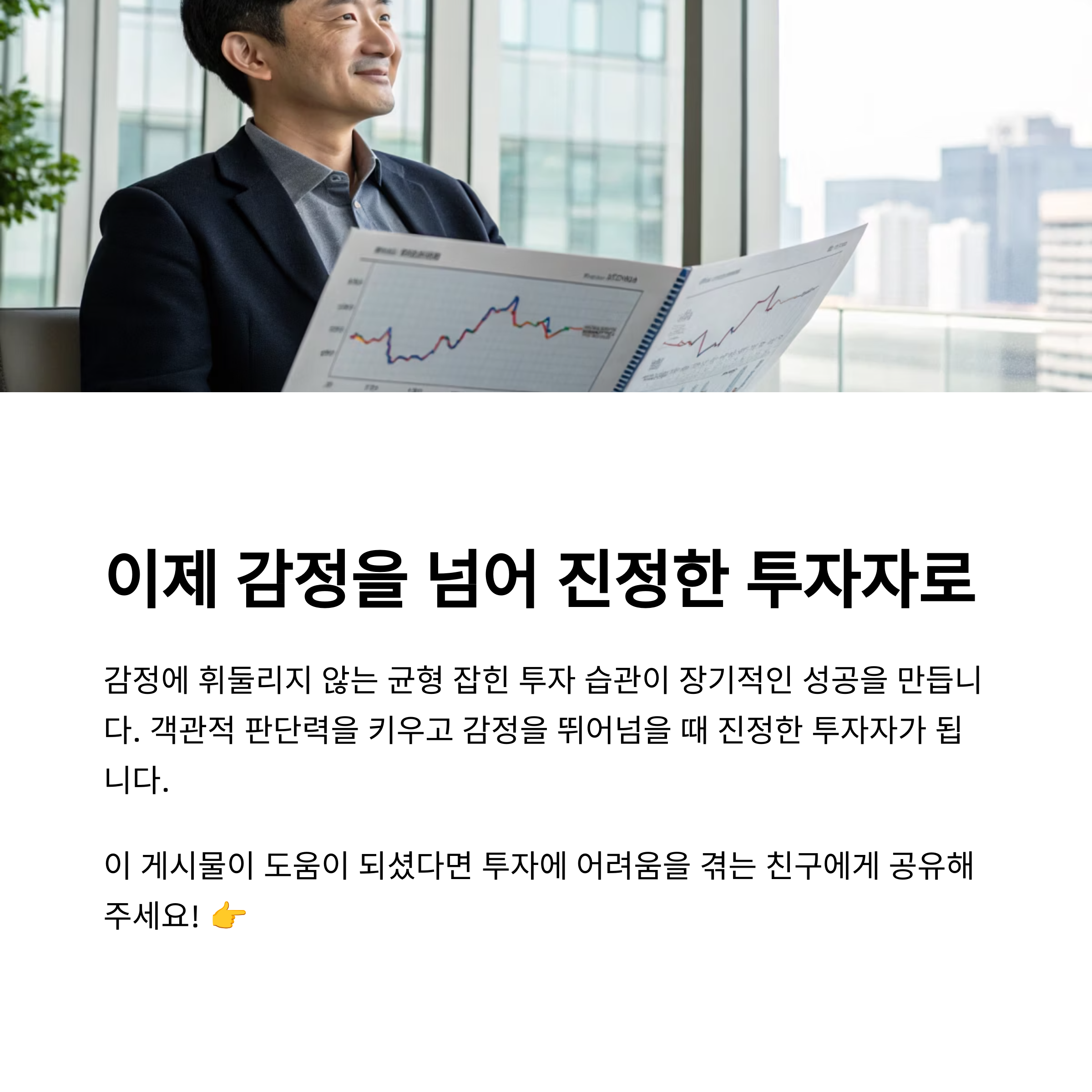 여러분은 최근 감정 투자한 경험이 있으신가요? 그때 어떤 감정이 결정을 이끌었는지, 앞으로 어떻게 개선해 나갈 계획인지 공유해주세요. 댓글로 소통하며 함께 성장해요!