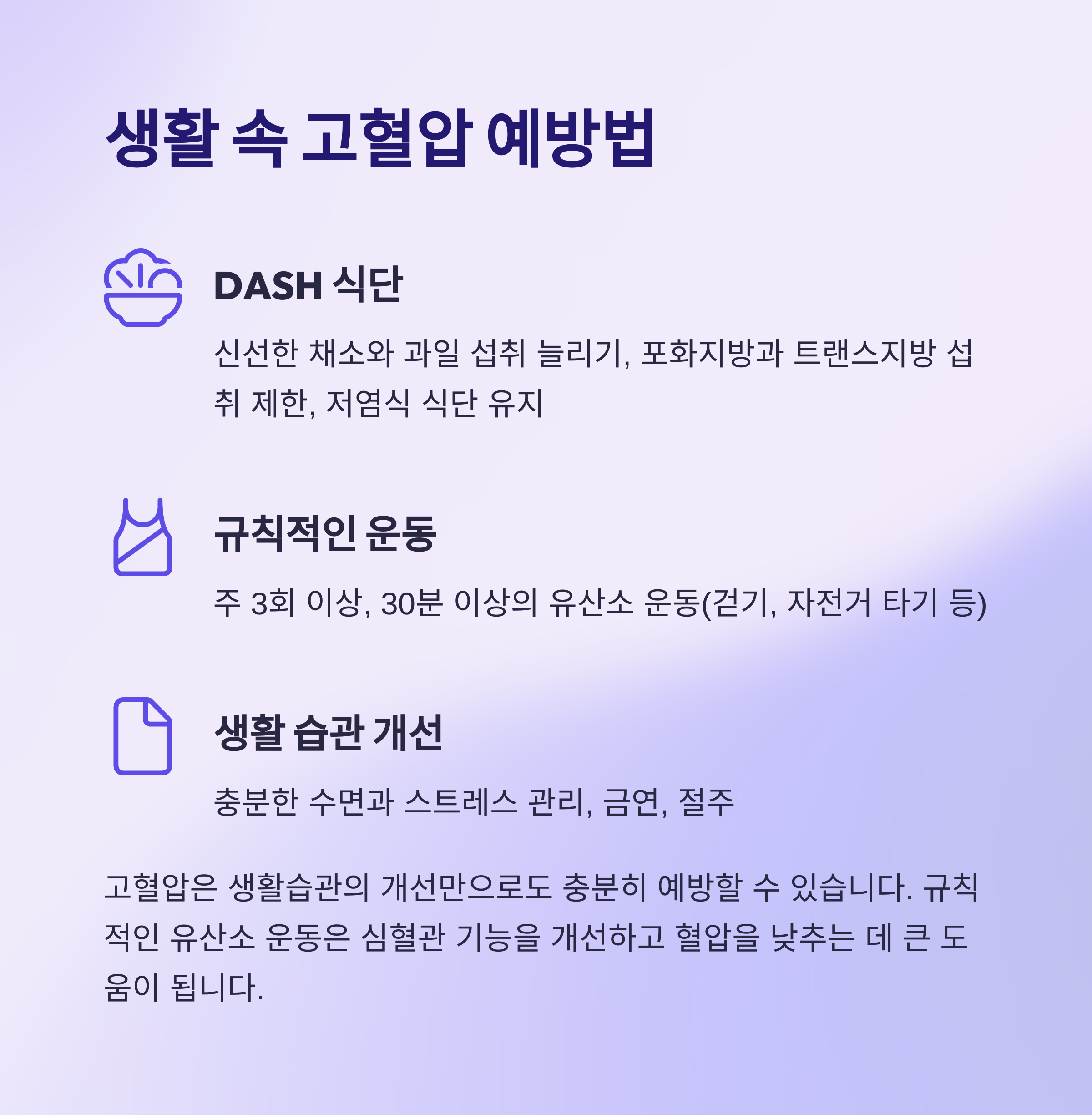 식습관과 운동은 고혈압 관리의 핵심 요소입니다.
