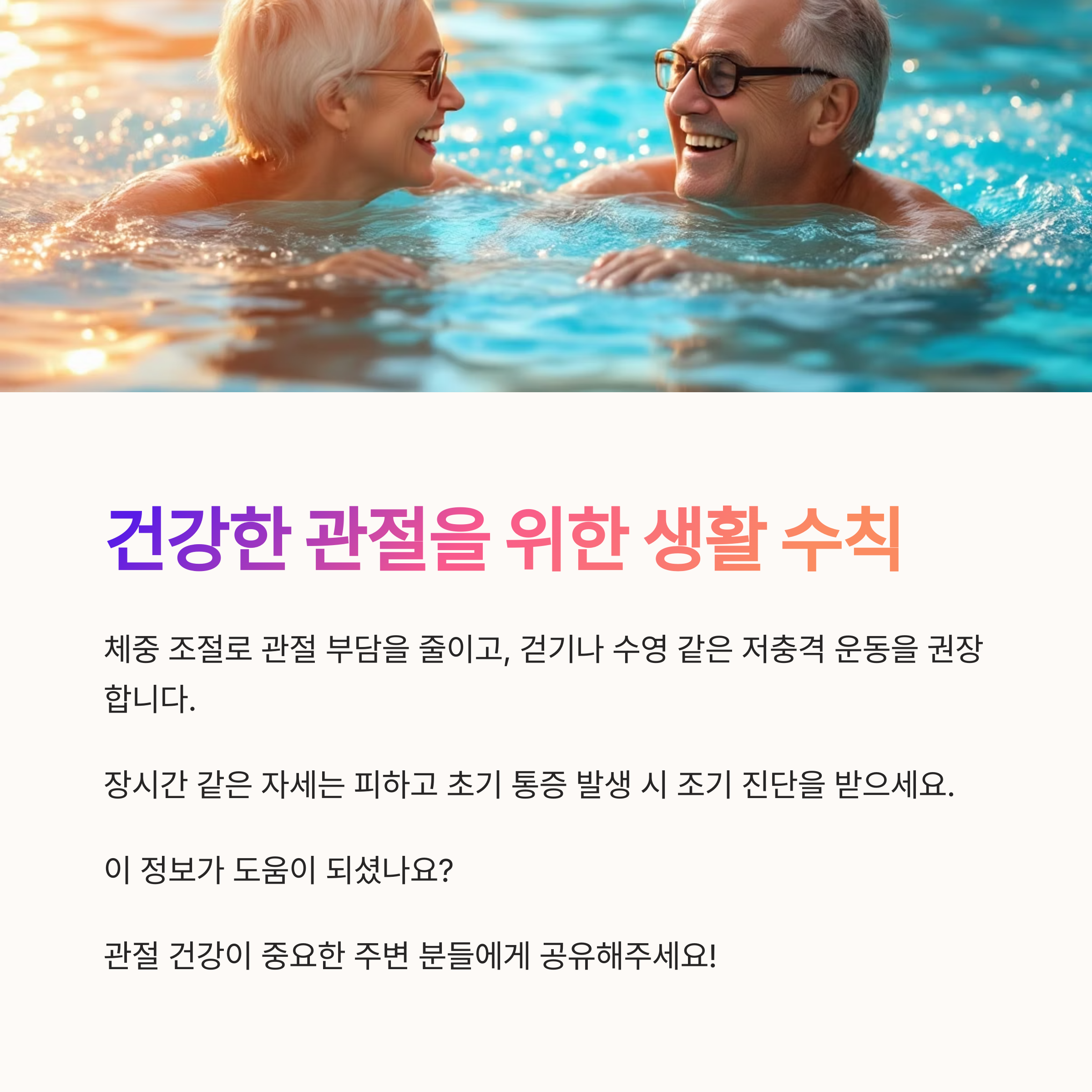 오늘 소개한 내용을 바탕으로 관절 건강을 미리 챙기고,