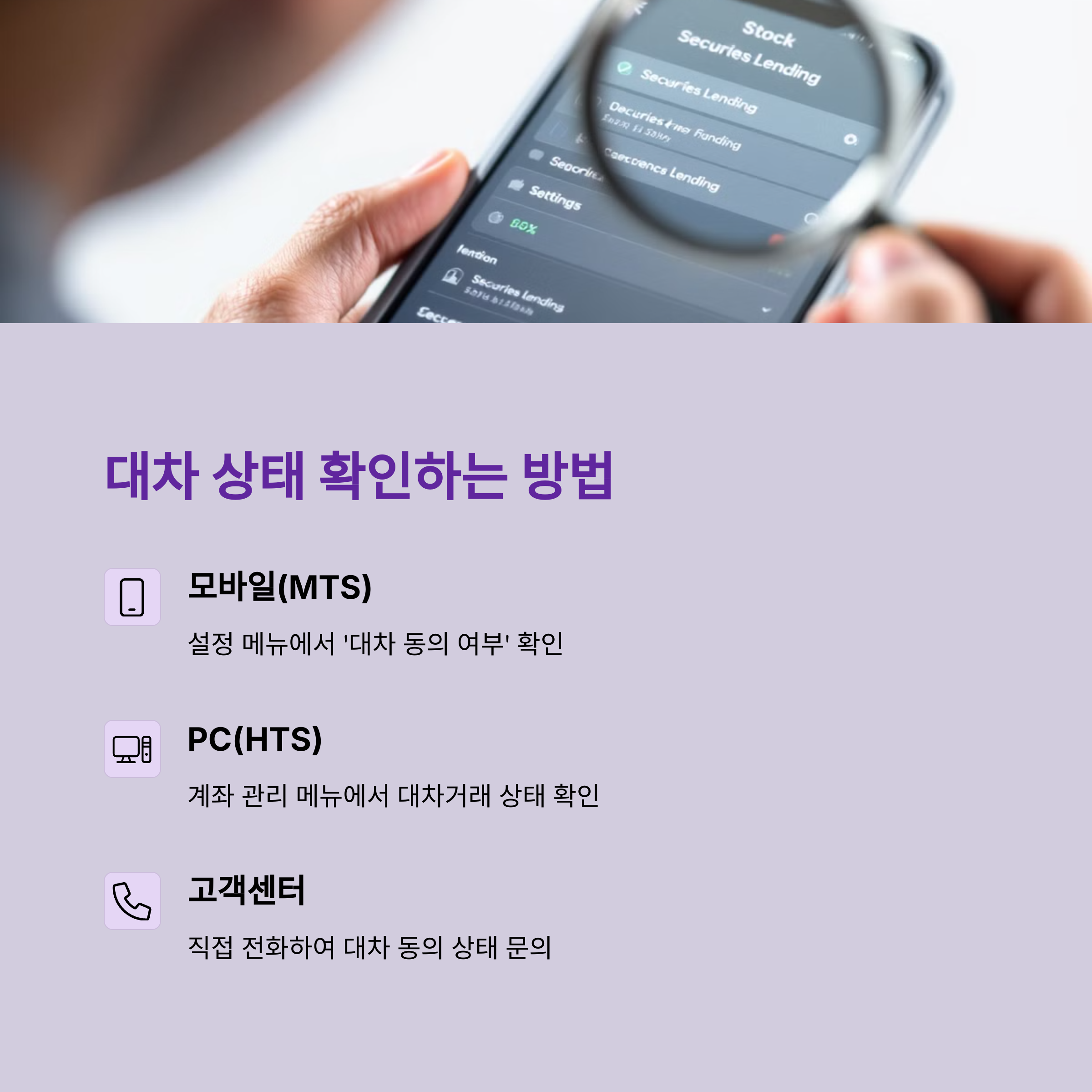 ● 삼성증권: MTS ‘계좌관리’ > ‘주식대여 약정 해지’ 메뉴 이용
