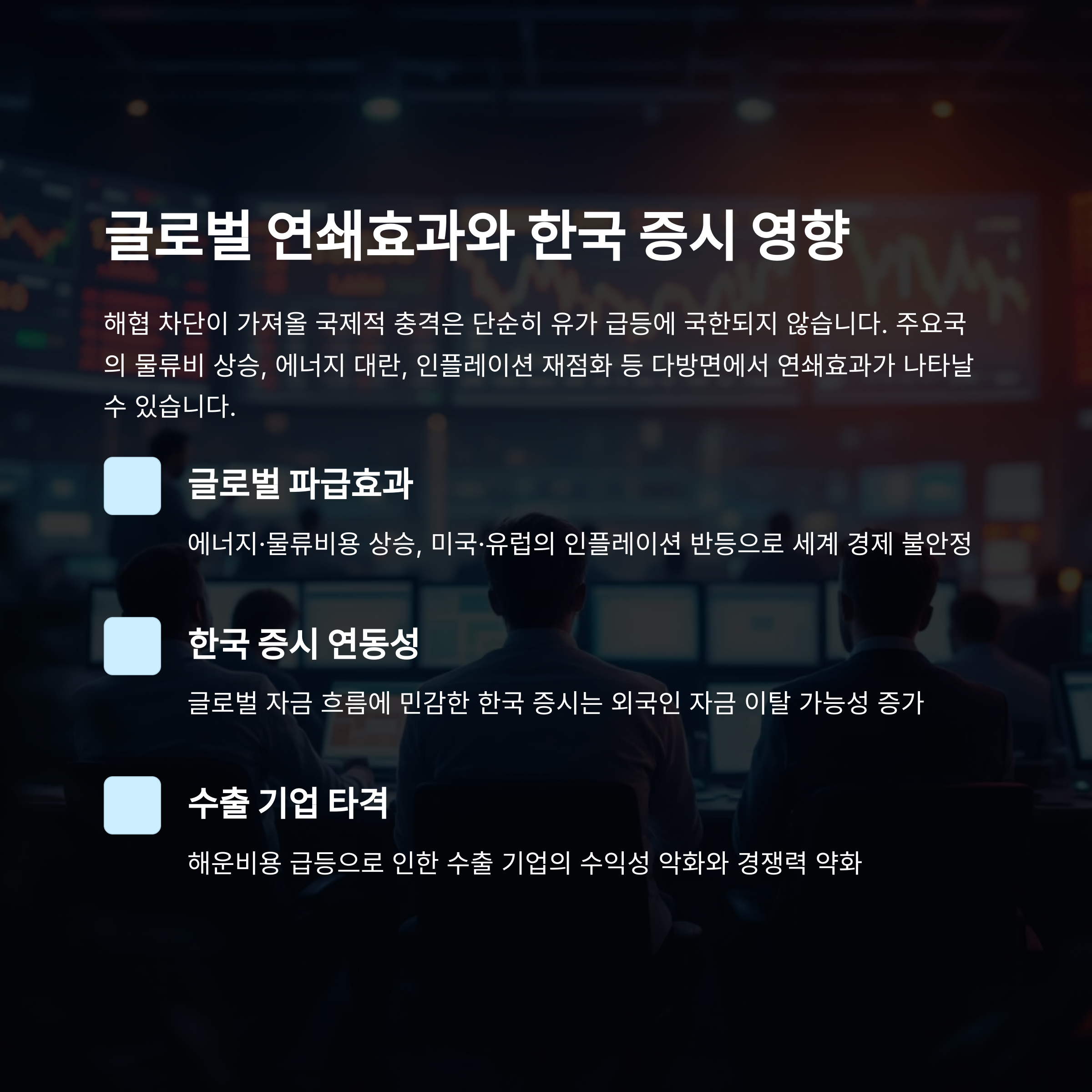 해협 차단이 가져올 국제적 충격은 단순히 유가 급등에 국한되지 않습니다.