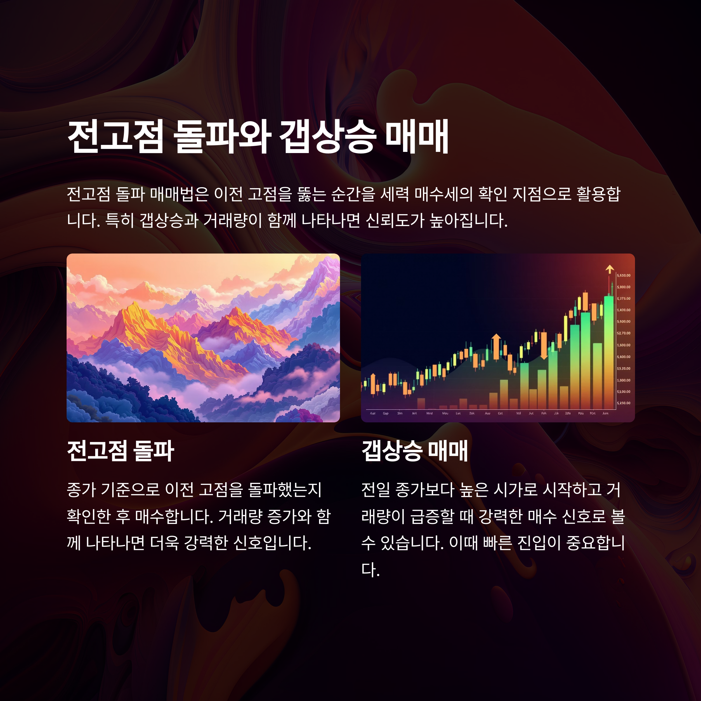특히 갭상승과 거래량이 함께 나타나는 경우 신뢰도가 높아집니다.
