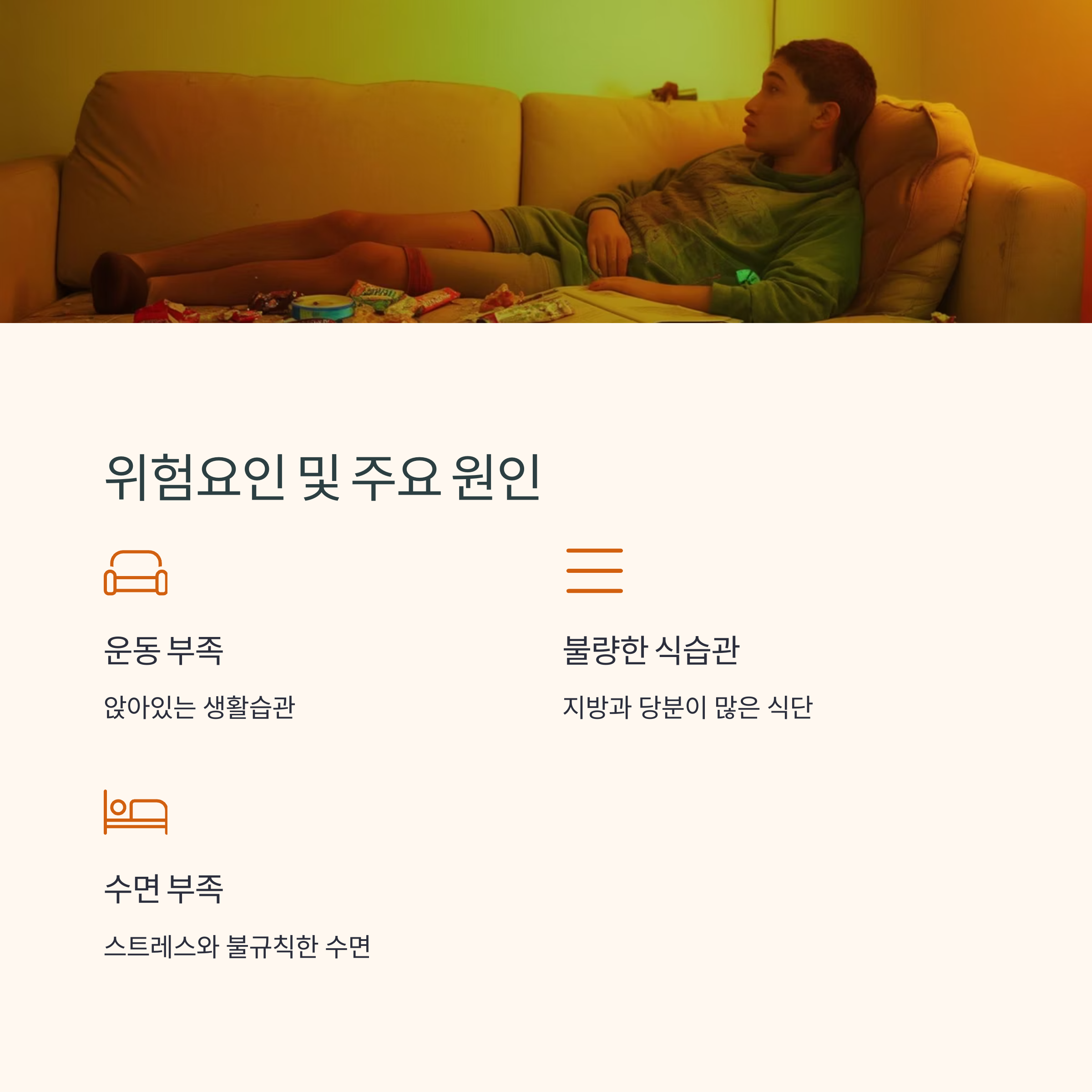- 운동 부족 및 앉아있는 생활습관