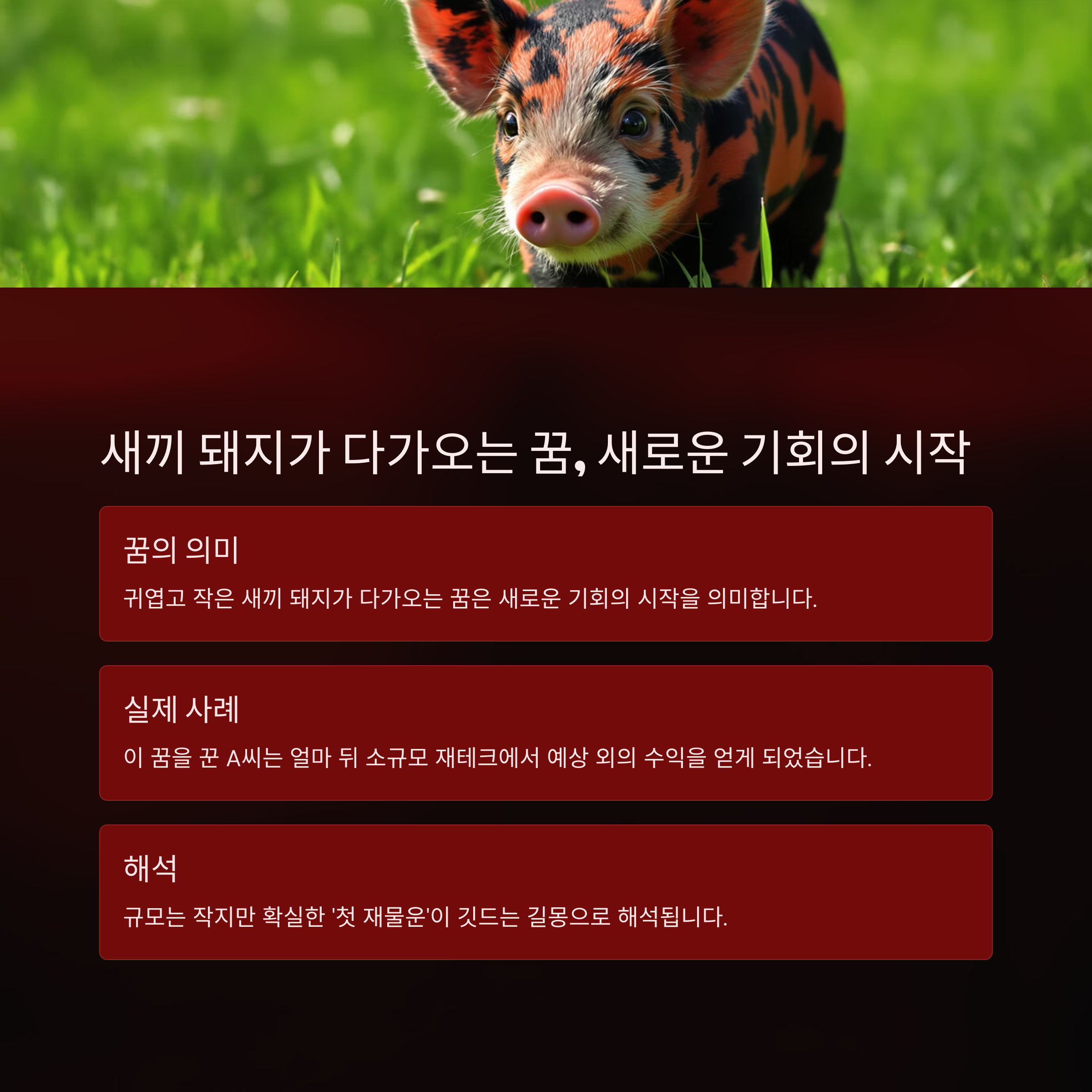 귀엽고 작은 새끼 돼지가 꿈속에서 다가왔다면, 이는 새로운 기회의 시작을 의미합니다.