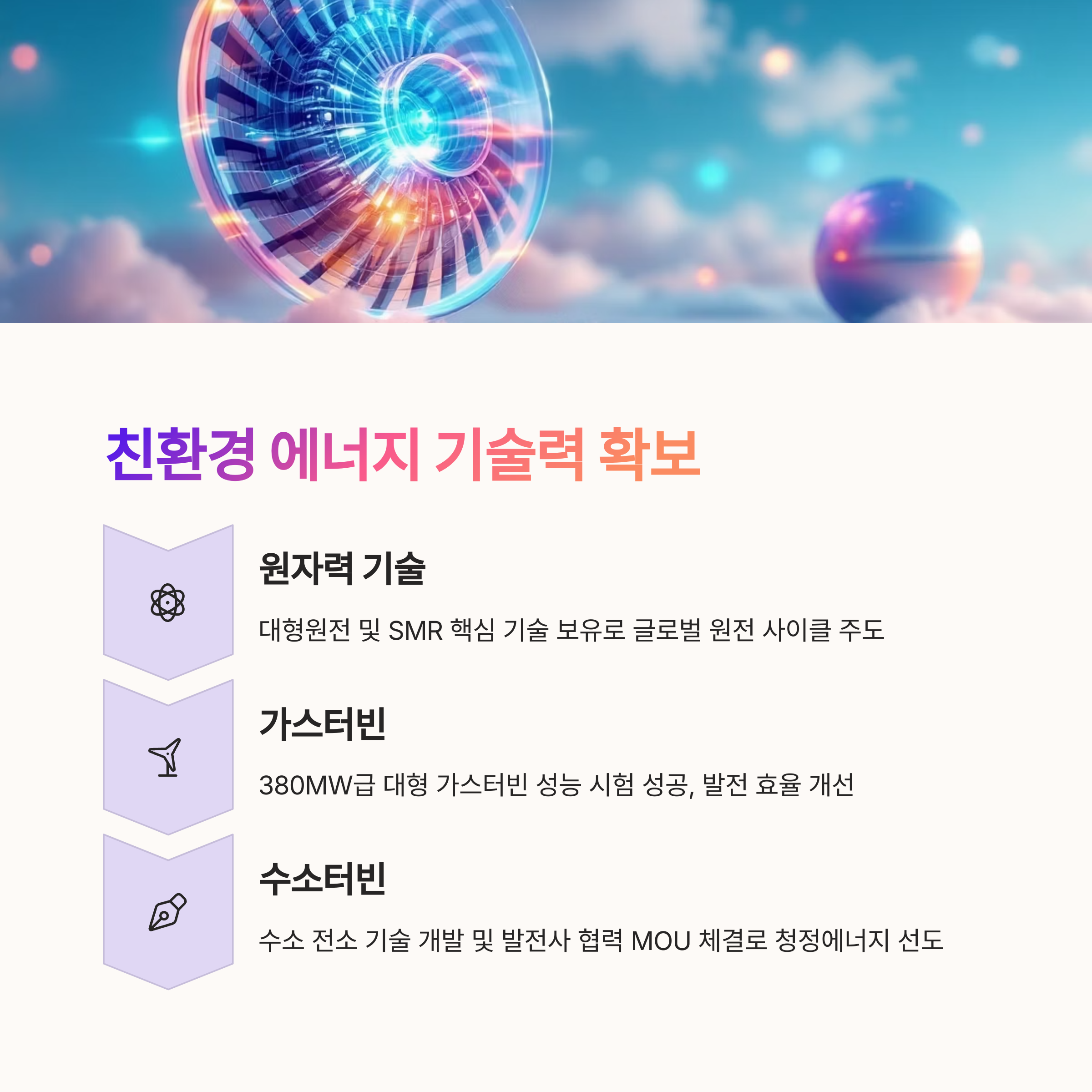 - 수소터빈 등 친환경 기술 선도