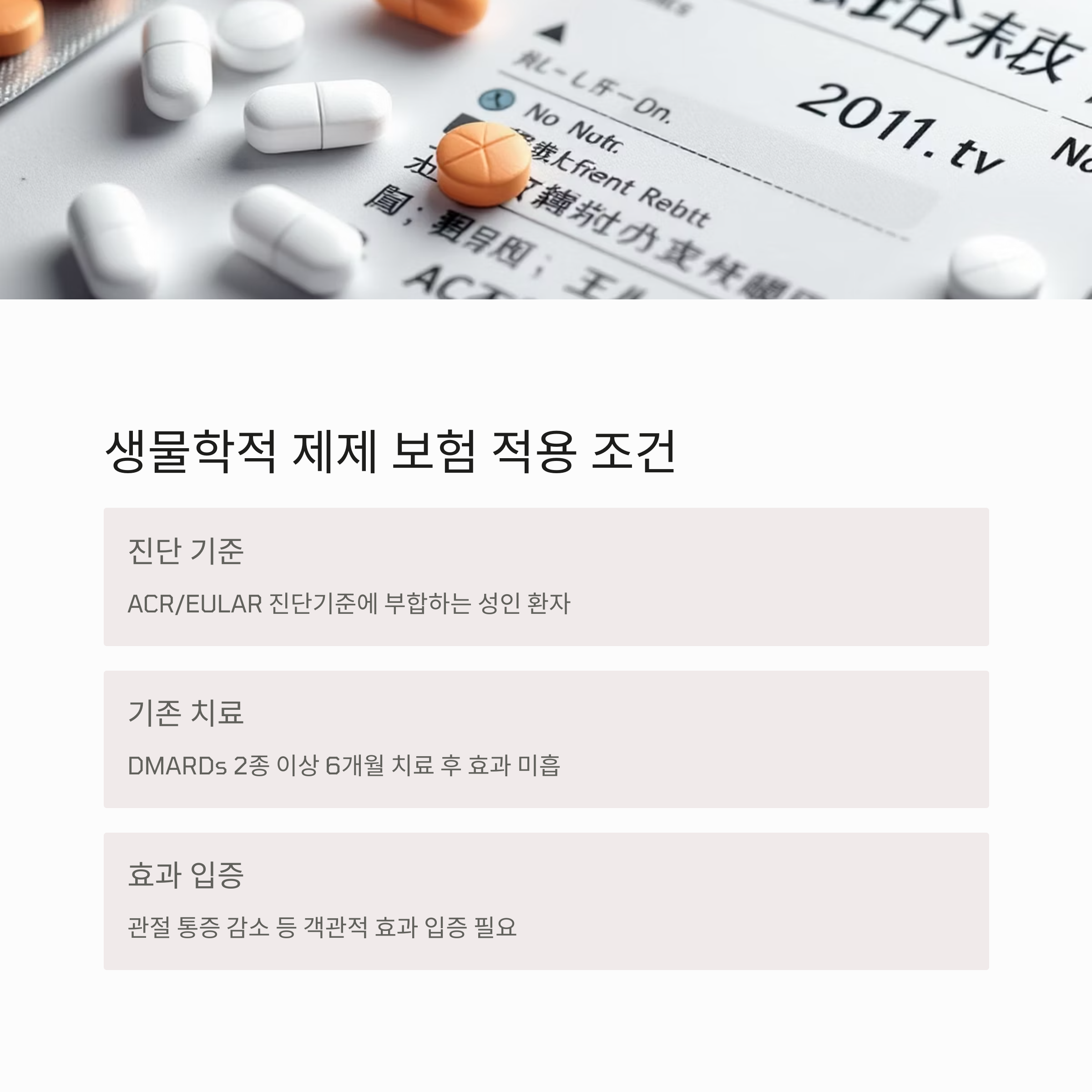 고가 치료제로 분류되는 생물학적 제제(예: 휴미라, 엔브렐, 젤잔즈 등)를 건강보험으로 급여 적용 받기 위해서는 특정 조건을 충족해야 합니다. 일반적으로