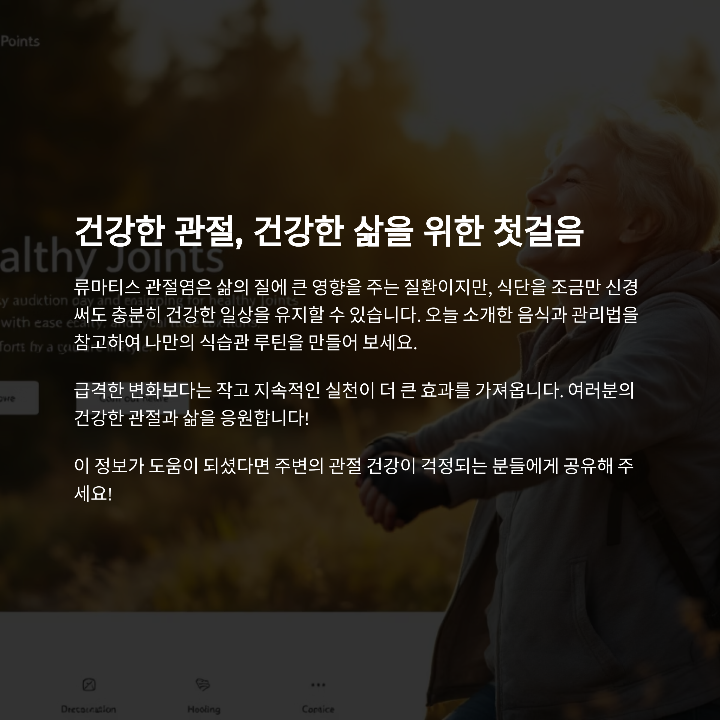 오늘은 과학적 연구와 전문 기관의 자료를 토대로, 류마티스 관절염 증상 완화에 도움이 되는 음식들과 피해야 할 식품,