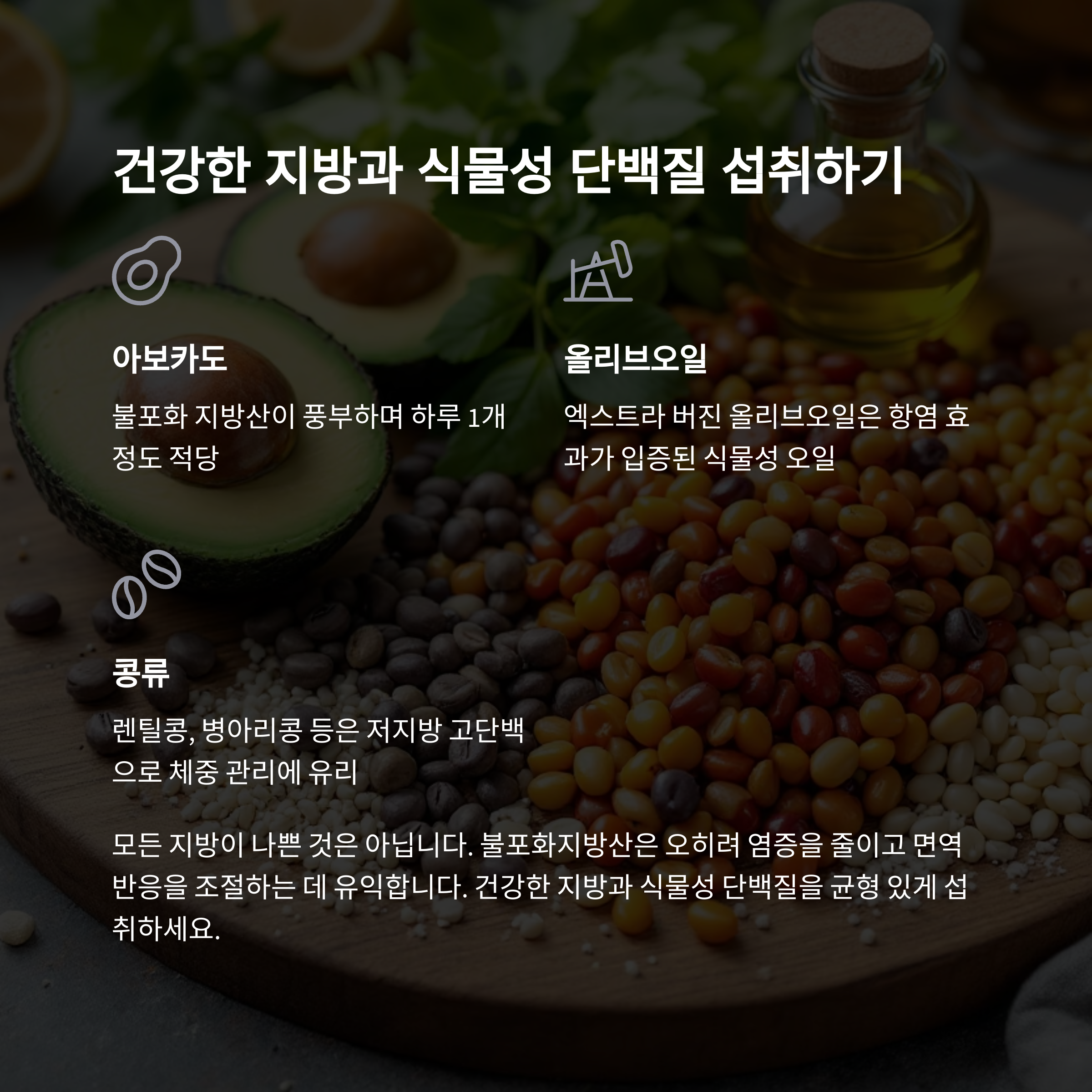 불포화지방산은 오히려 염증을 줄이고 면역 반응을 조절하는 데 유익합니다.