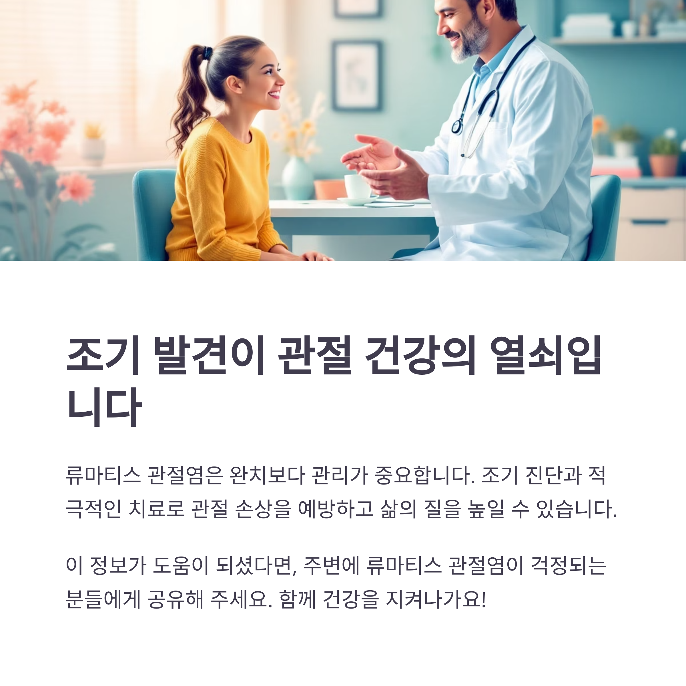 완치는 어렵지만, 조기 진단과 적극적인 치료를 통해 관절 손상을 예방하고 삶의 질을 높일 수 있습니다.