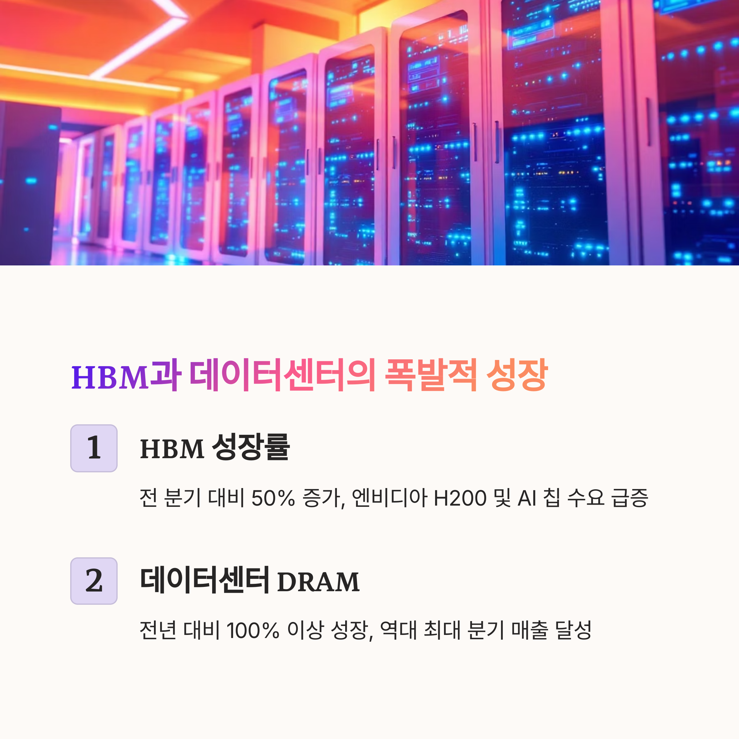 | HBM (고대역폭 메모리) | 전 분기 대비 +50% | AI용 GPU 수요 급증이 주 원인 |