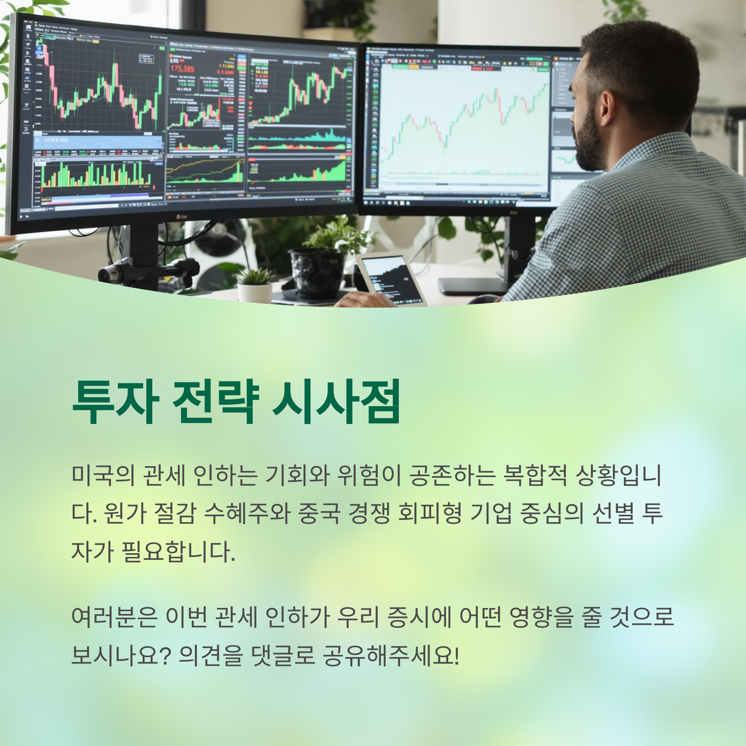 여러분은 이번 관세 인하 조치가 우리 증시에 어떤 영향을 줄 것으로 보시나요? 다양한 의견을 댓글로 함께 나눠주세요!