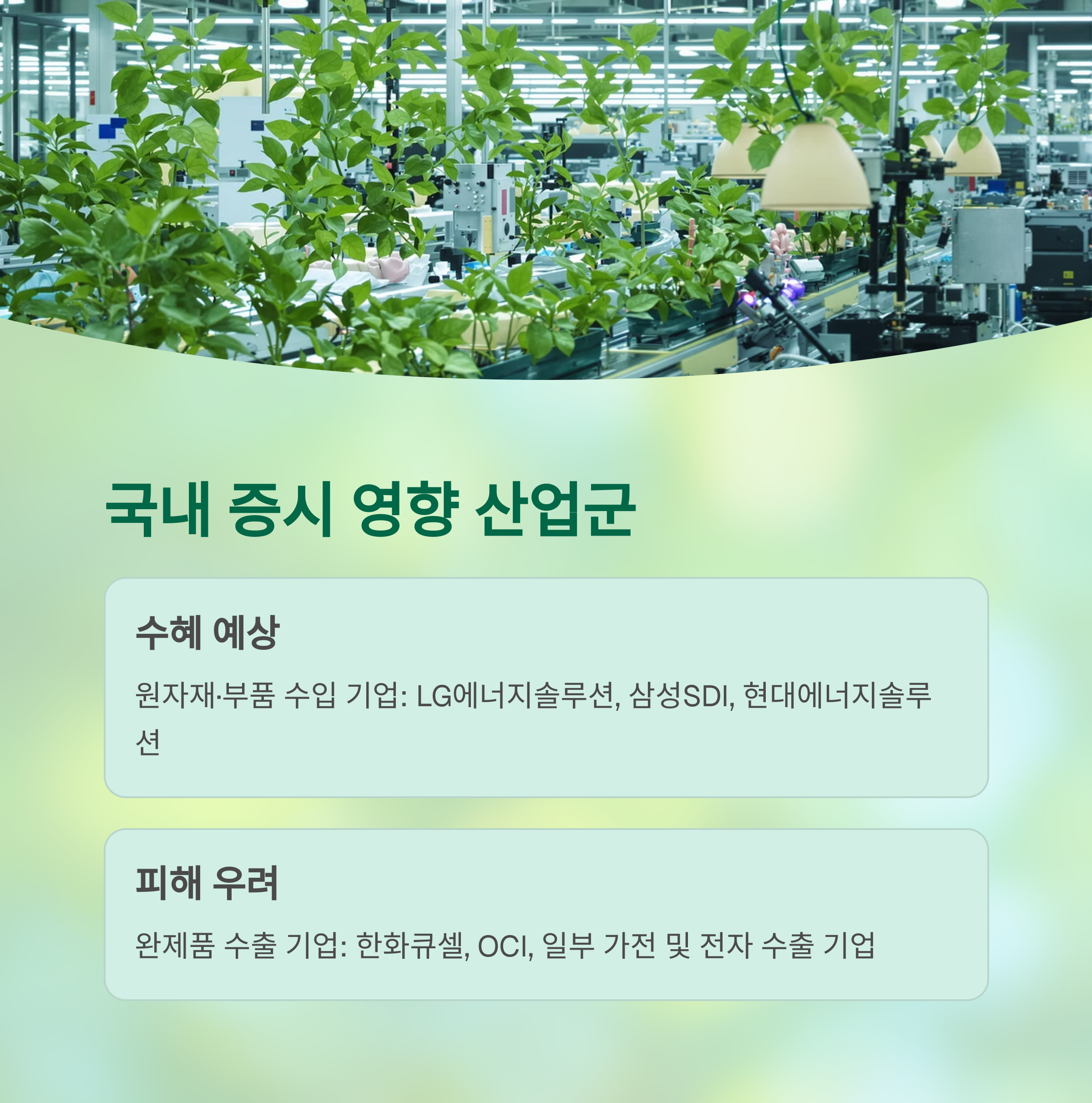 • 우려: 한화큐셀, OCI, 일부 가전 및 전자 수출 기업