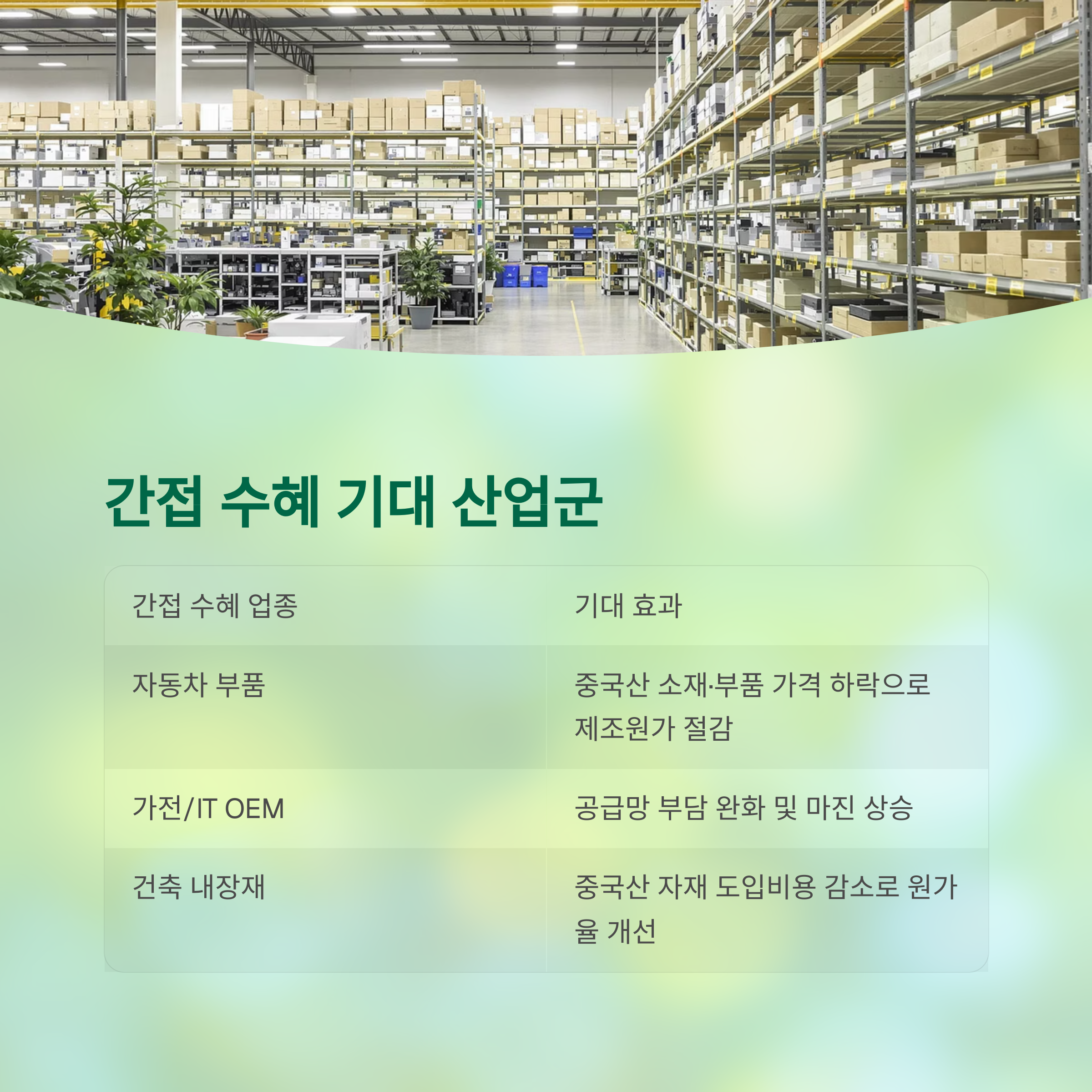 | 가전/IT OEM | 공급망 부담 완화 및 마진 상승 기대 |