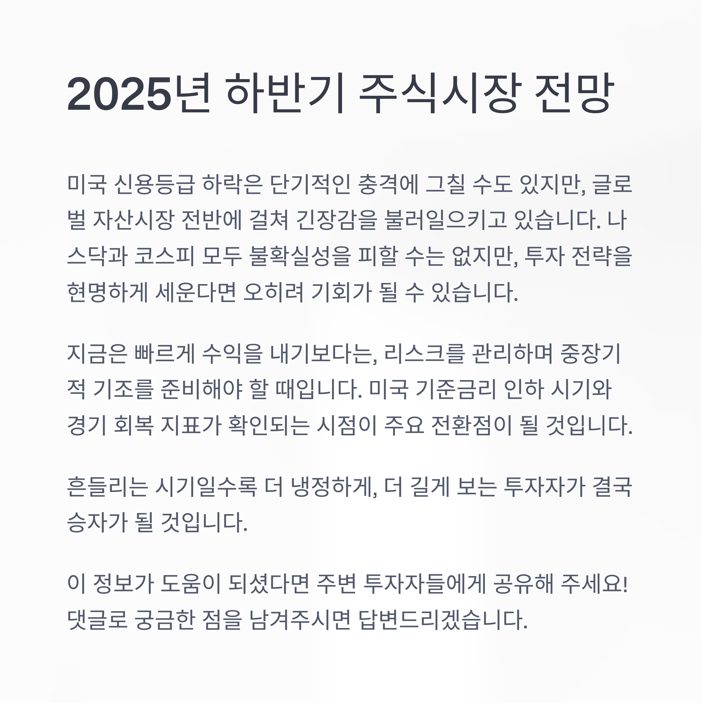 오늘은 2025년 미국 신용등급 하락이 코스피와 나스닥에 미치는 영향, 앞으로의 시장 전망을 심층 분석해드립니다.