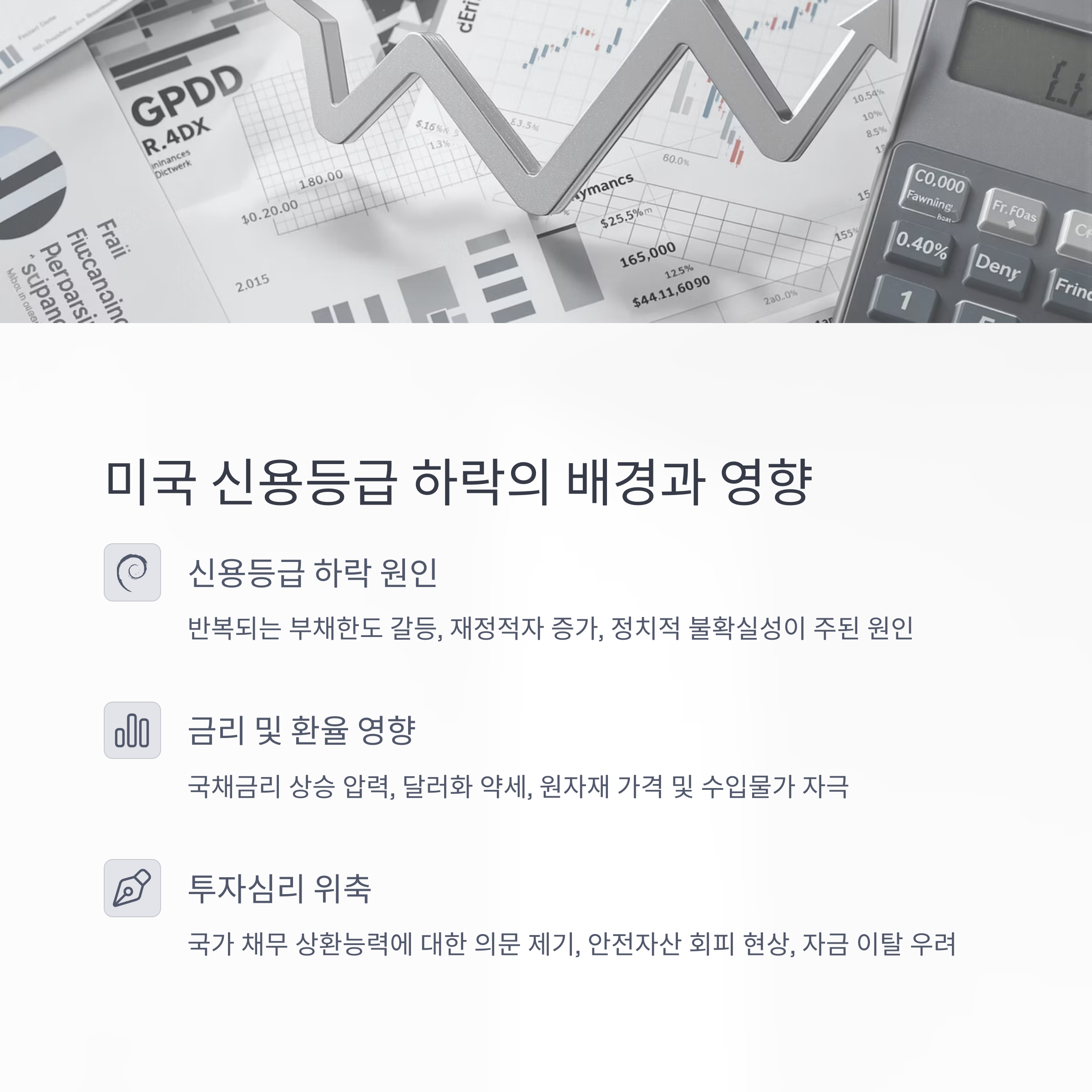 이는 반복되는 부채한도 갈등, 재정적자 증가, 정치적 불확실성이 주된 원인으로 꼽힙니다.