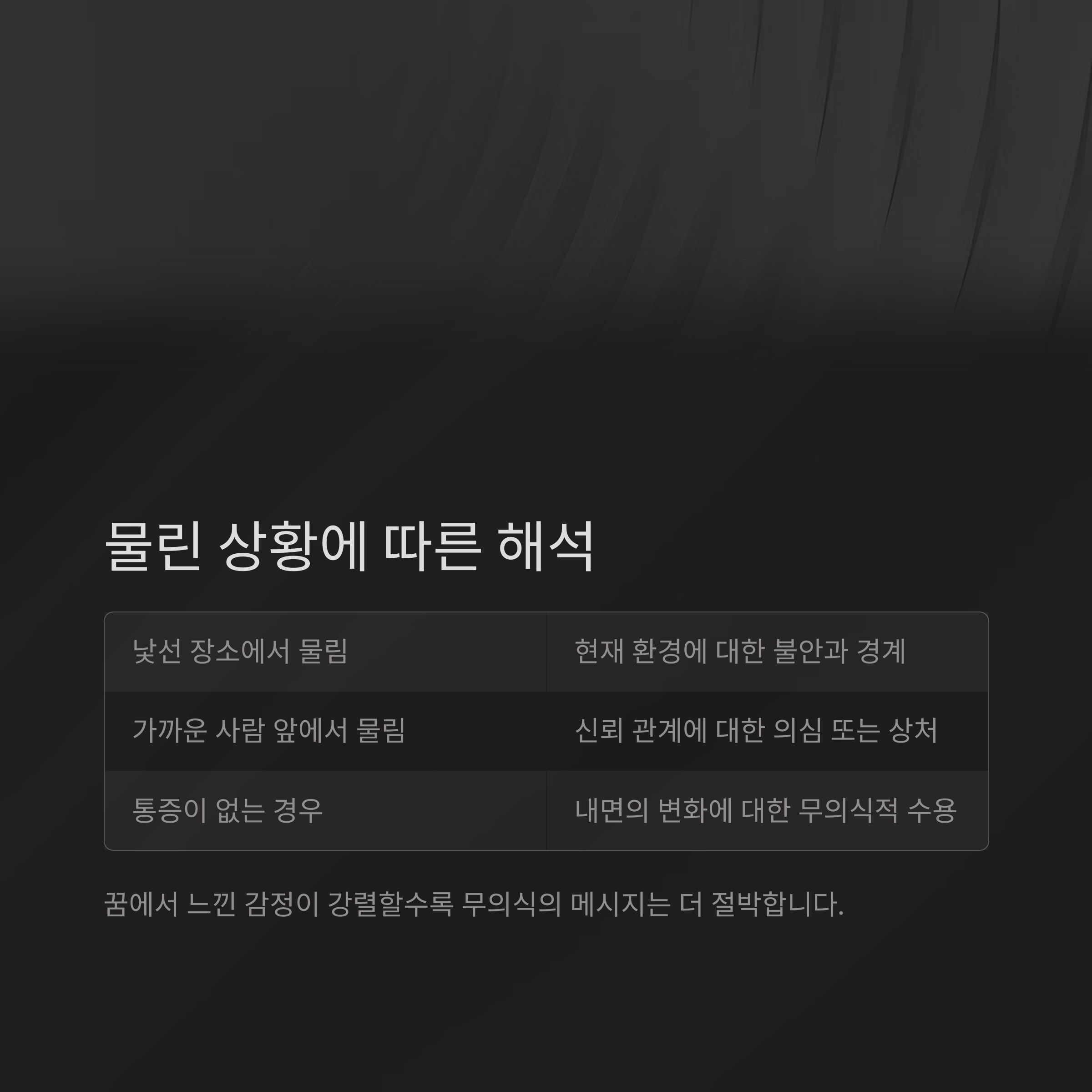 앞으로도 이런 꿈 이야기가 궁금하시다면 자주 찾아와 주세요. 여러분의 무의식은 늘 어떤 말을 하고 싶어 하니까요.