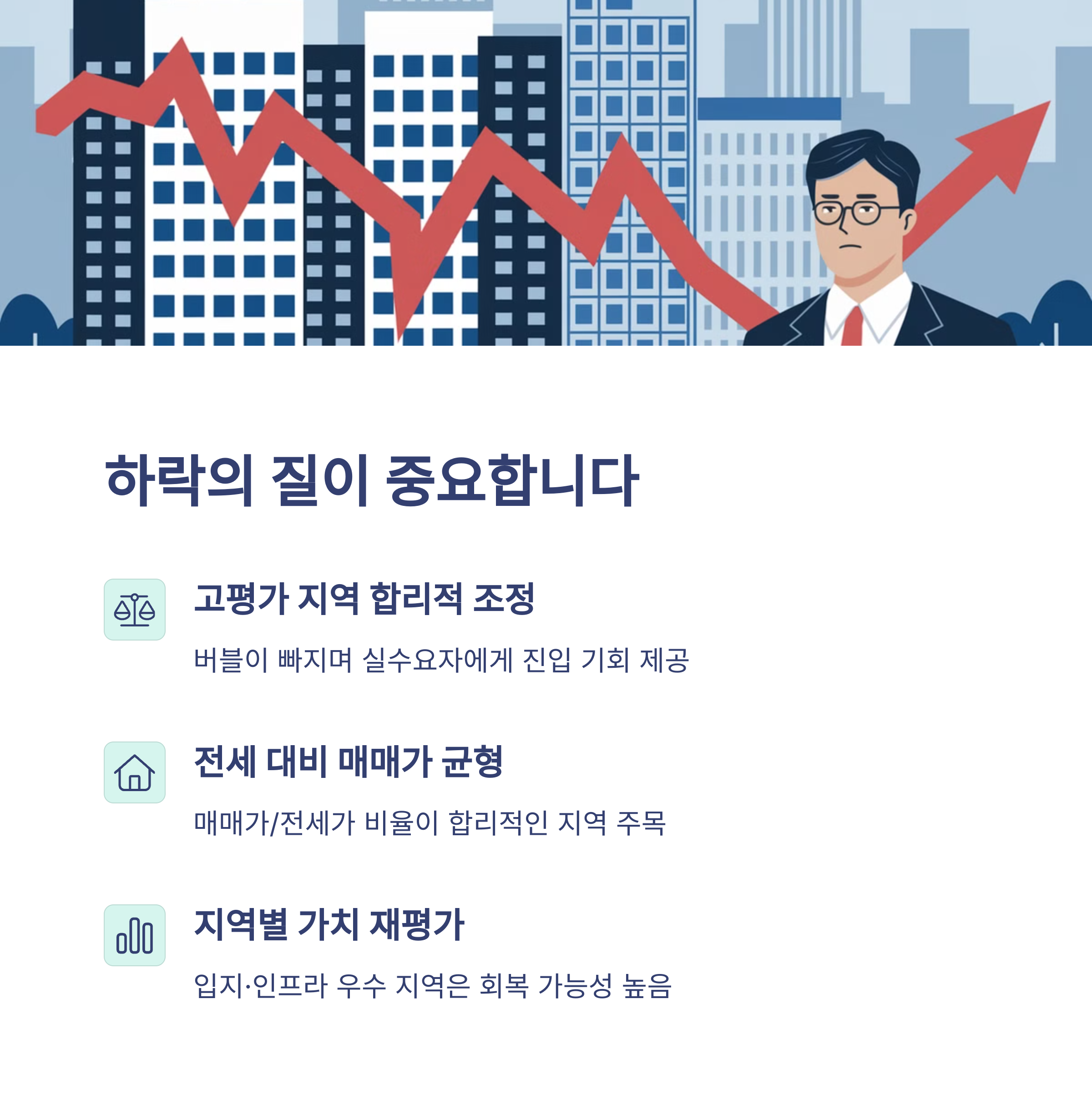 | 지금의 기회는? | 고평가 지역의 가격 조정, 실거주 수요자 중심의 매수 기회 |
