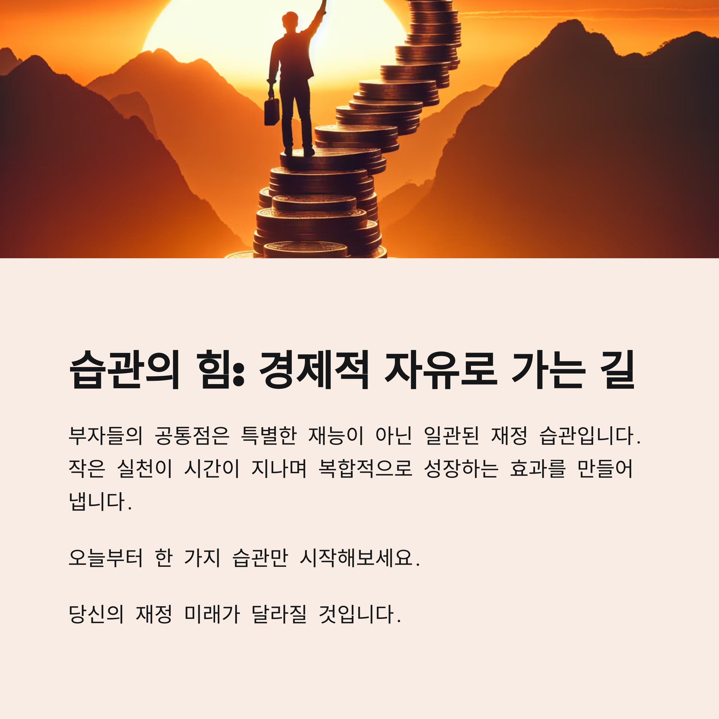 여러분은 어떤 부자 습관을 실천하고 계신가요? 혹은 이 글을 읽고 새로 시작하고 싶은 습관이 있다면 댓글로 공유해 주세요. 작은 실천이 큰 변화로 이어집니다!