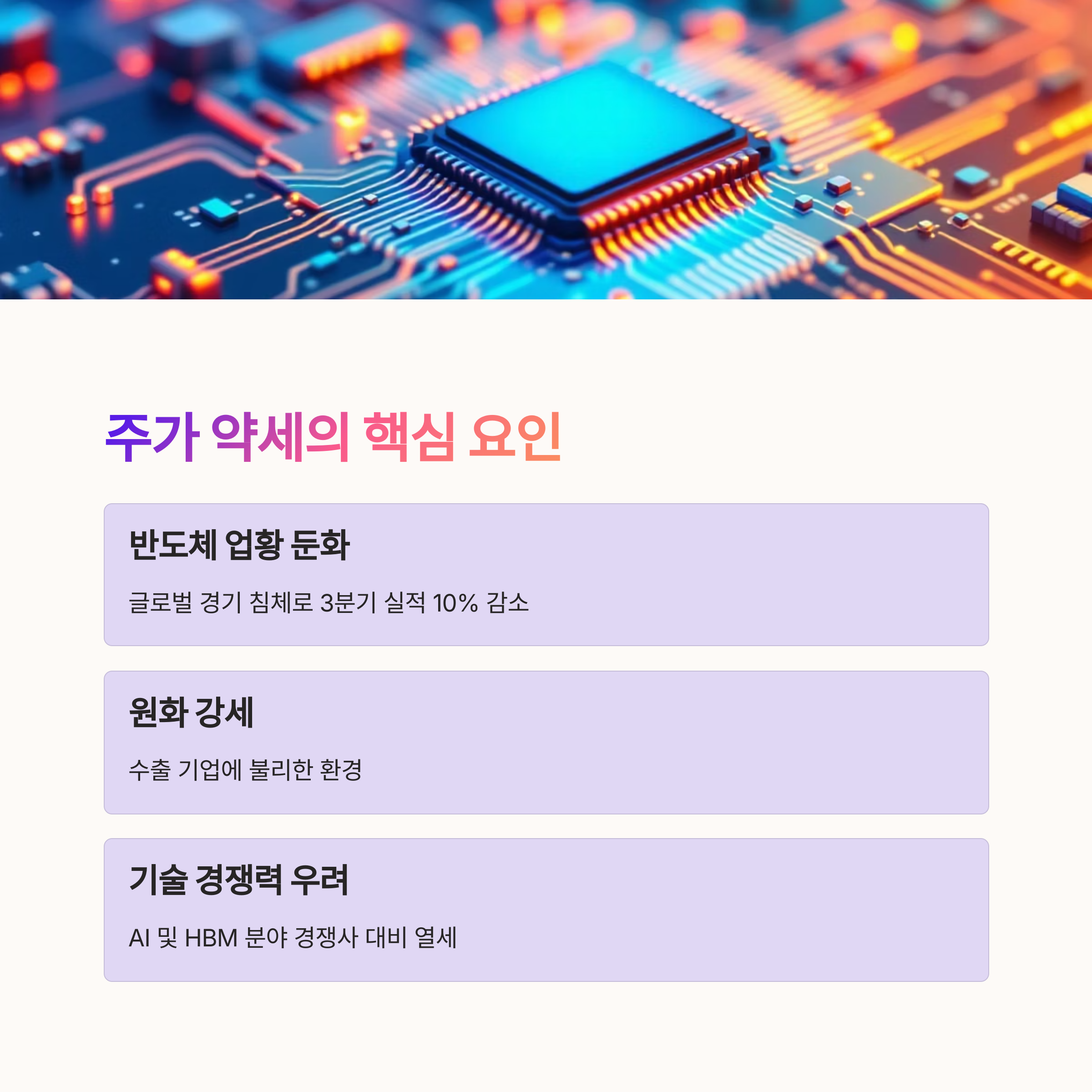 | 반도체 업황 둔화 | 글로벌 경기 침체와 수요 위축으로 2025년 3분기 실적이 전년 대비 10% 감소 |