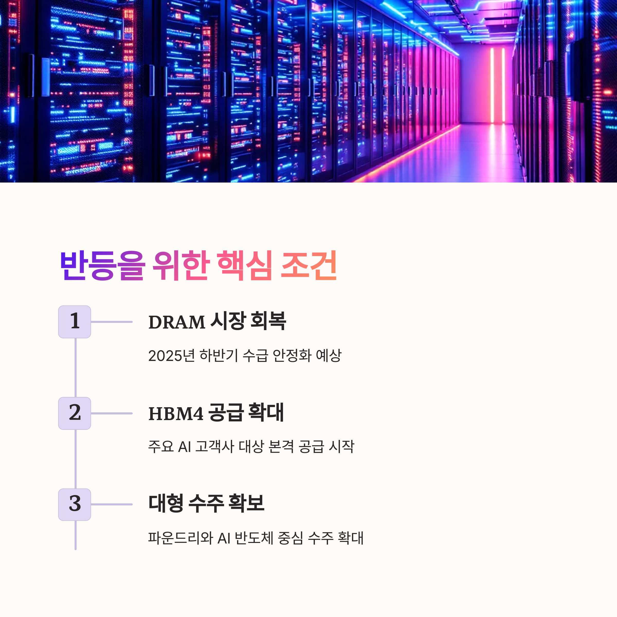 특히 HBM4 양산과 DRAM 시장 회복, AI 수요 확대가 맞물릴 경우 새로운 상승 국면에 진입할 수 있는 기회도 열려 있습니다.