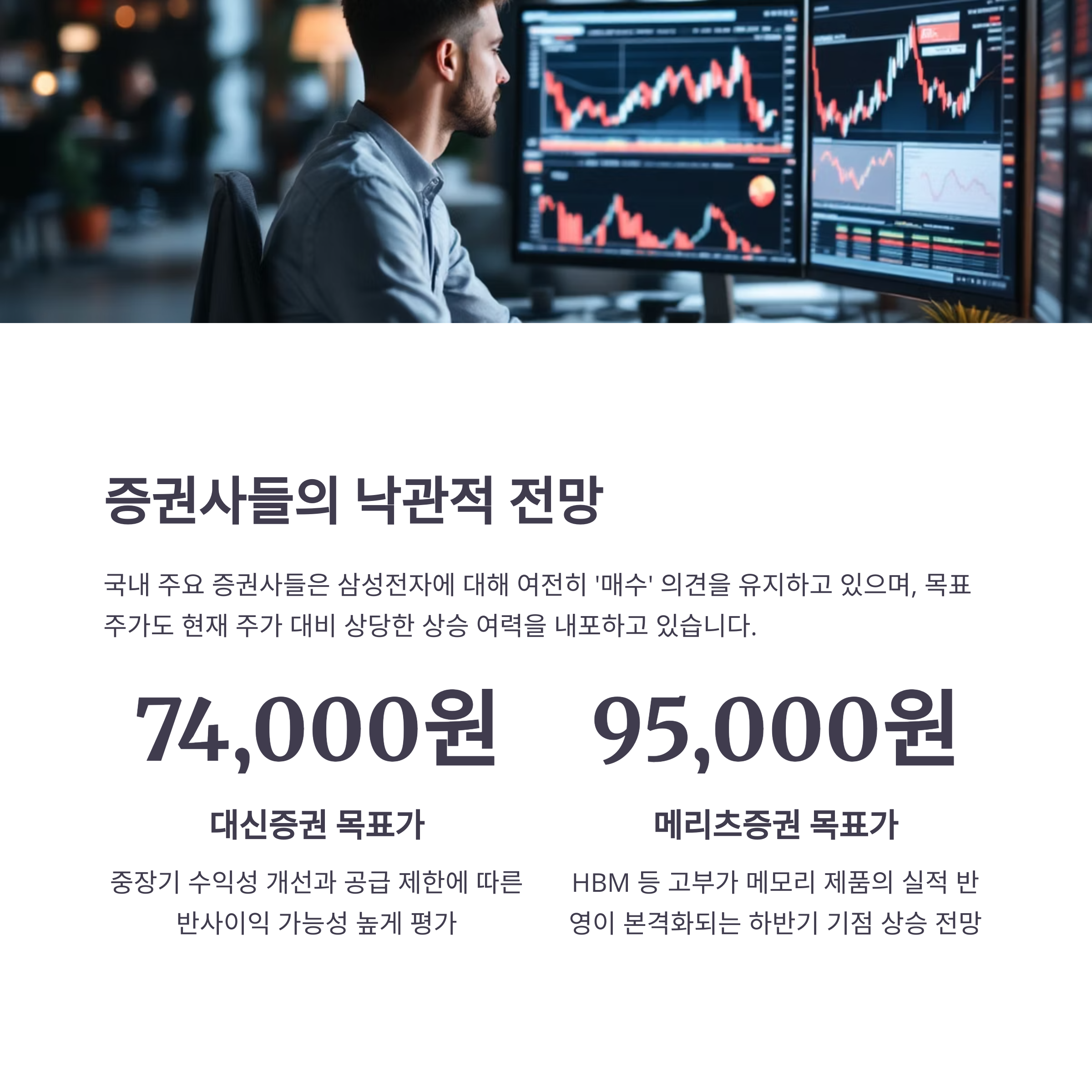 메리츠증권은 HBM과 같은 고부가 메모리 제품의 실적 반영이 본격화되는 하반기를 기점으로 주가가 9만5000원까지 상승할 수 있다는 분석을 내놓았습니다.