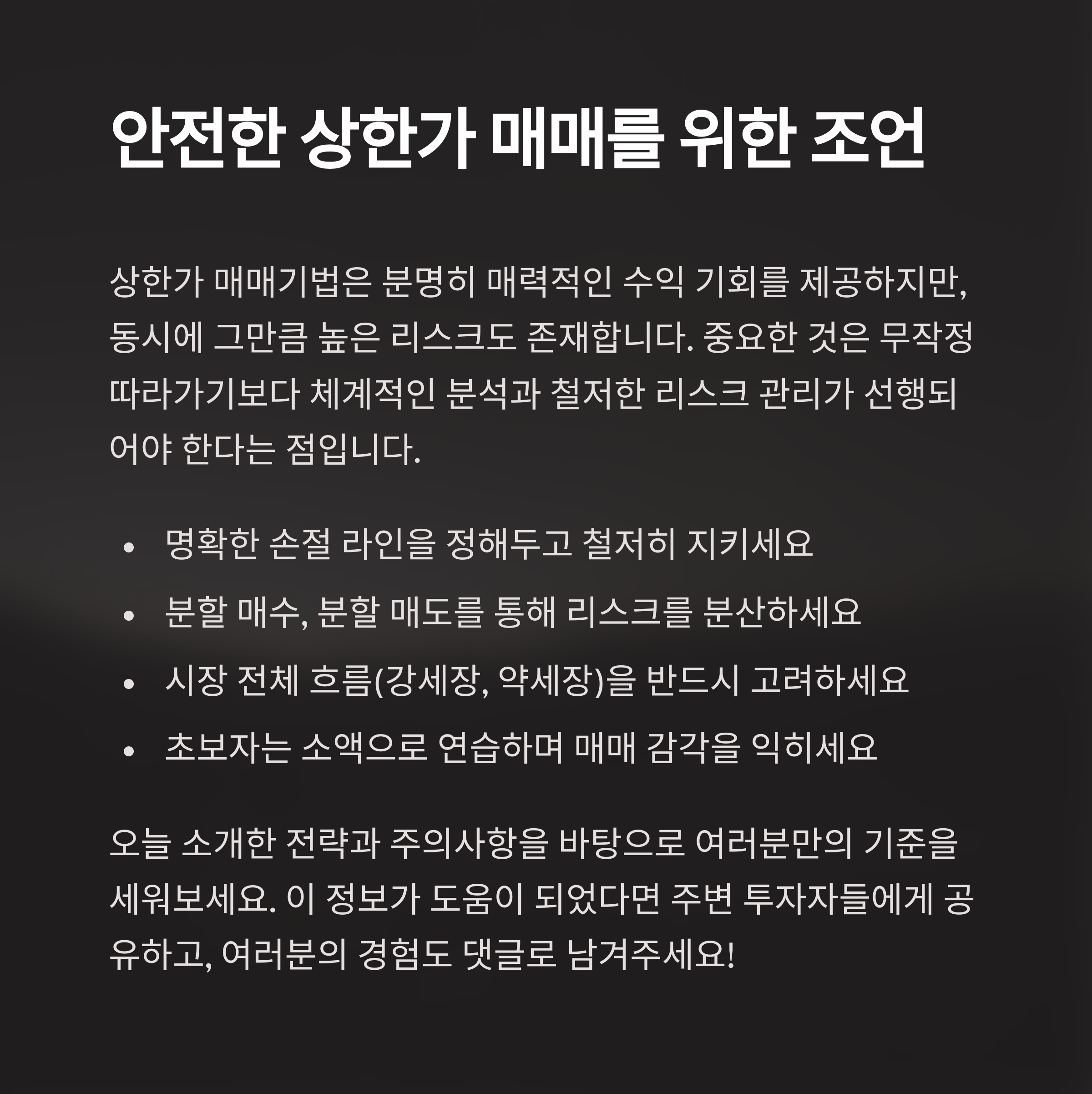 상한가 매매의 진짜 전략과 리스크 관리 방법을 공개합니다.