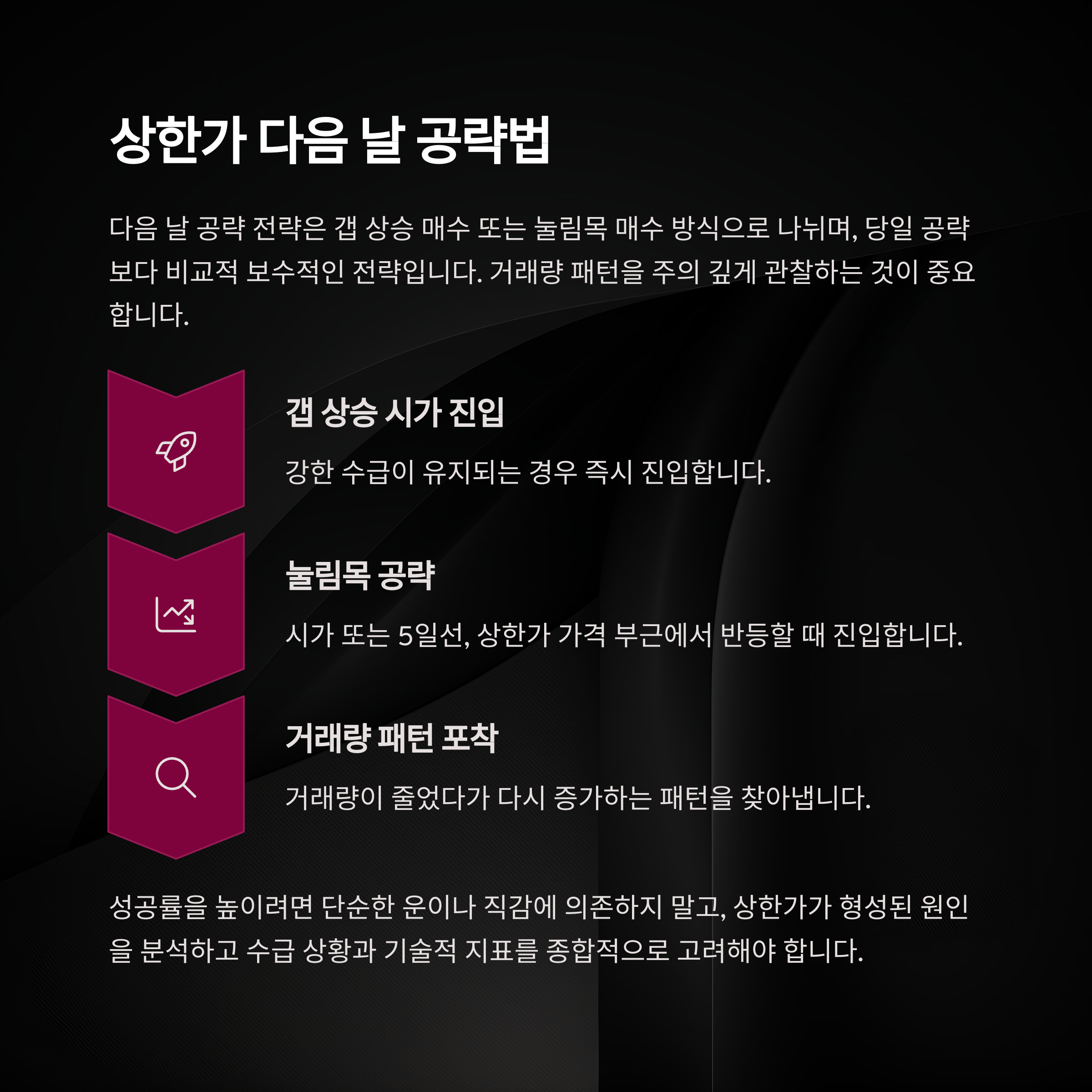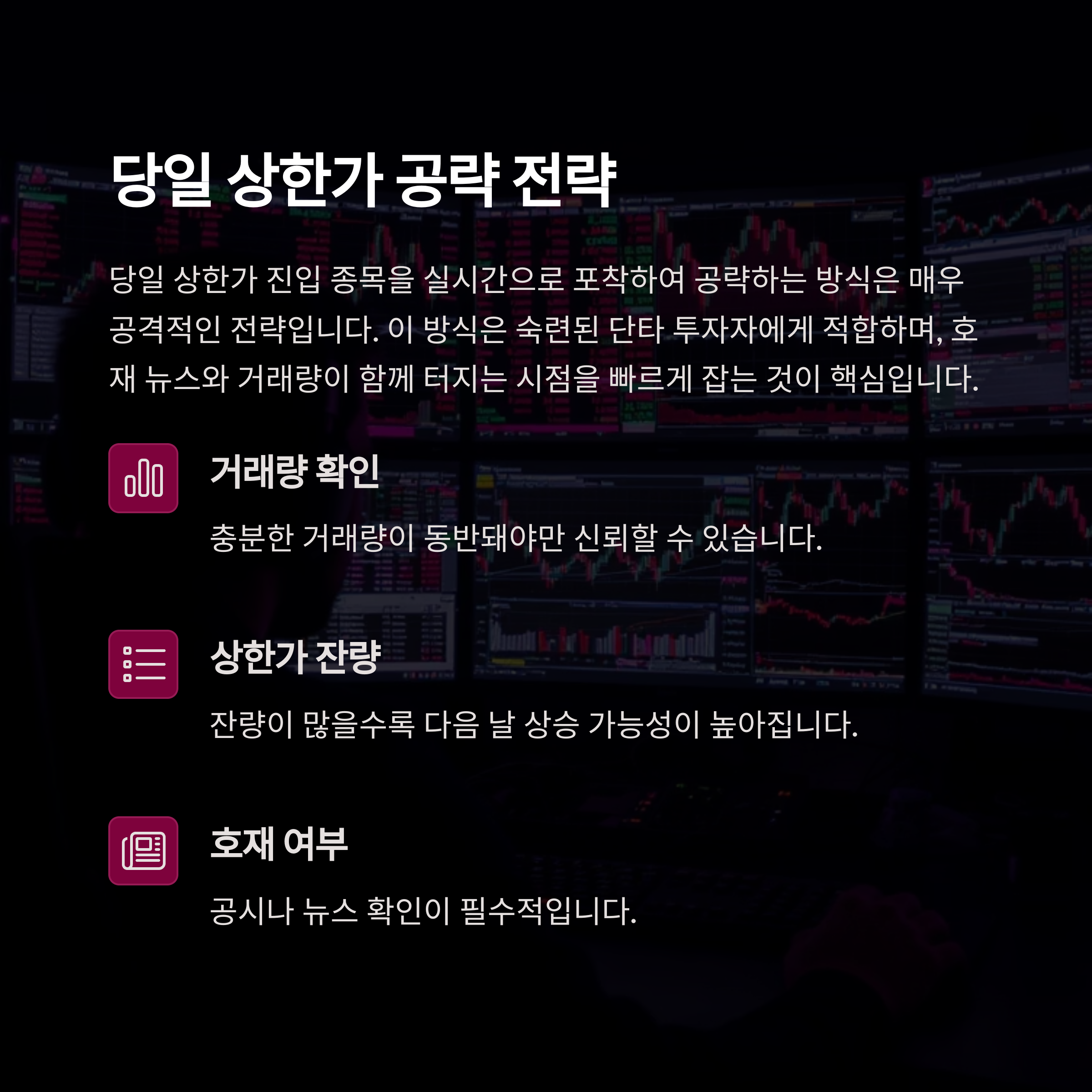상한가 매매의 성공률을 높이려면 단순한 운이나 직감에 의존해서는 안 됩니다.