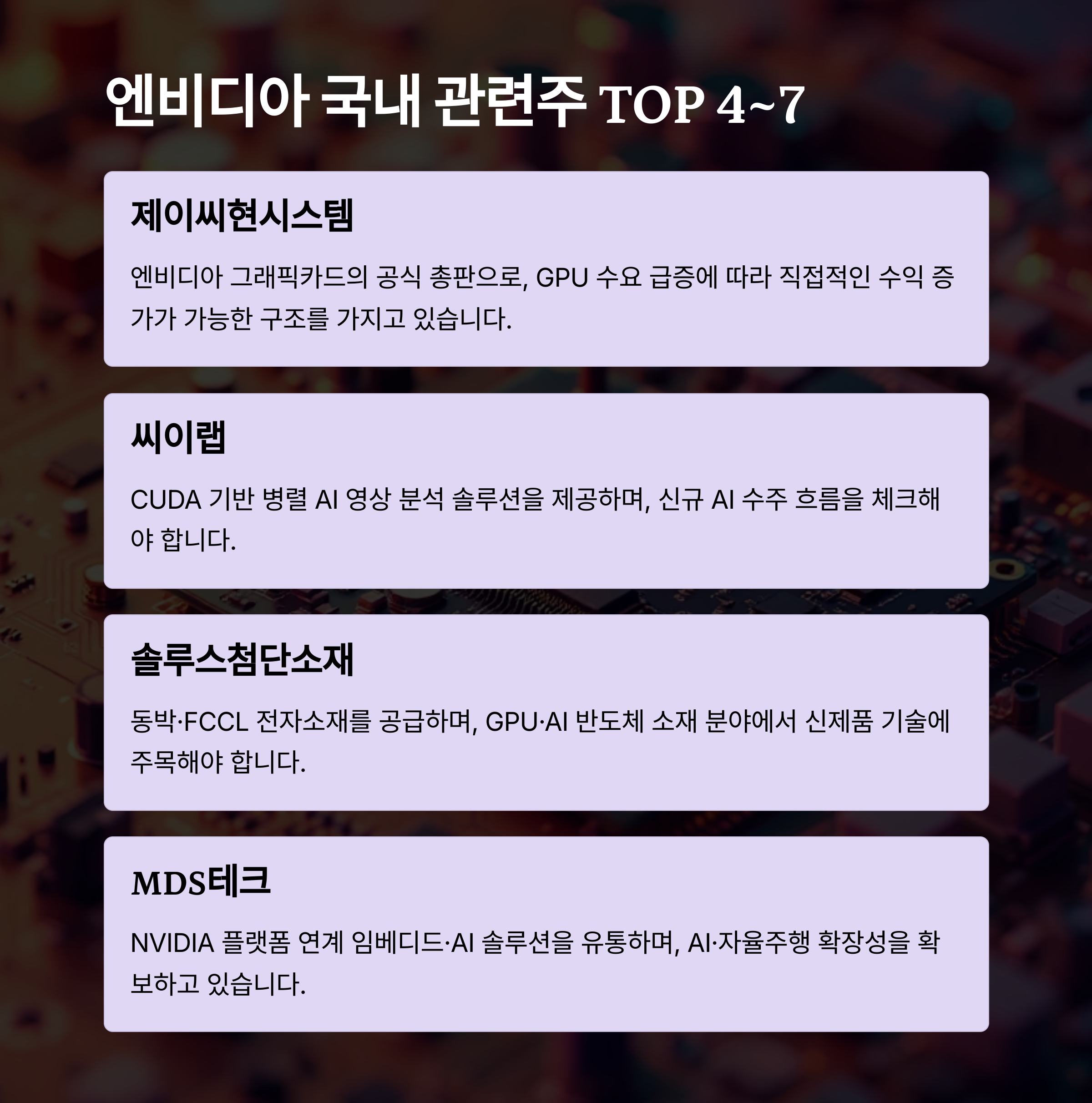 2025년 엔비디아 국내 관련주 TOP 7 분석 및 투자 전략
