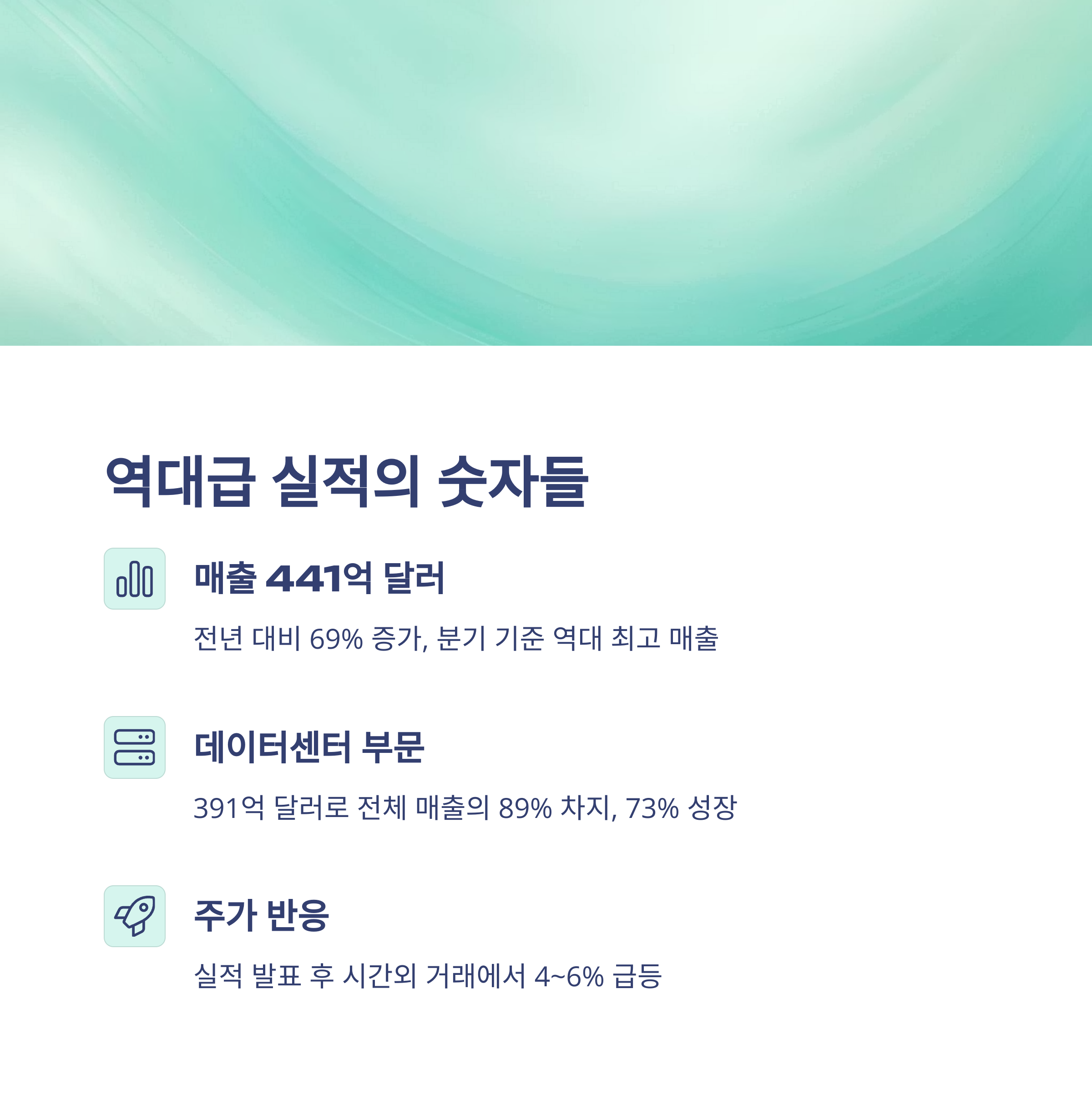 매출은 무려 441억 달러로 전년 동기 대비 69% 증가한 수치이며, 이는 분기 기준 역대 최고 매출입니다.