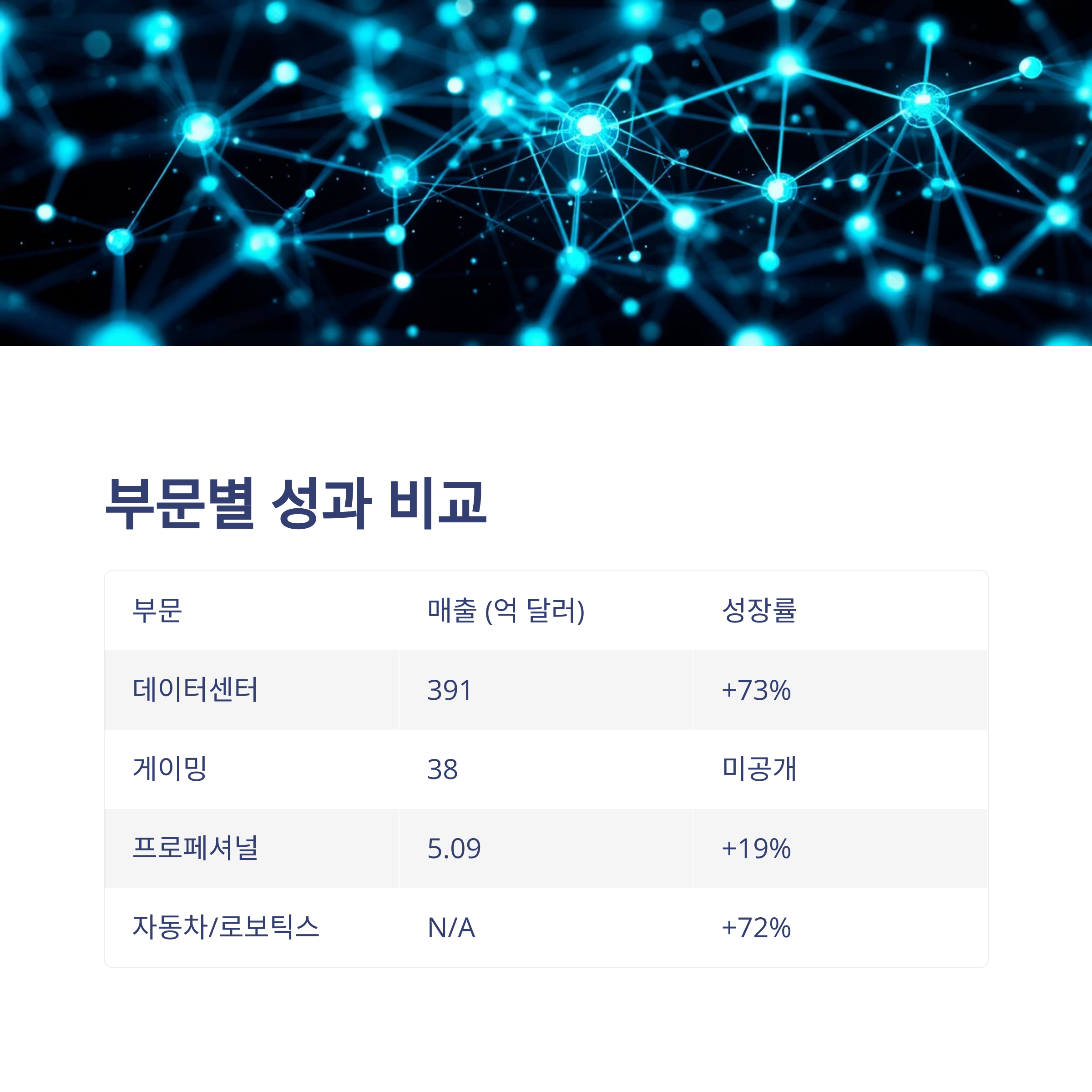 특히 이번 분기에서 데이터센터 부문 매출이 전체의 약 89%를 차지하며 엔비디아의 핵심 사업으로 자리 잡았습니다.