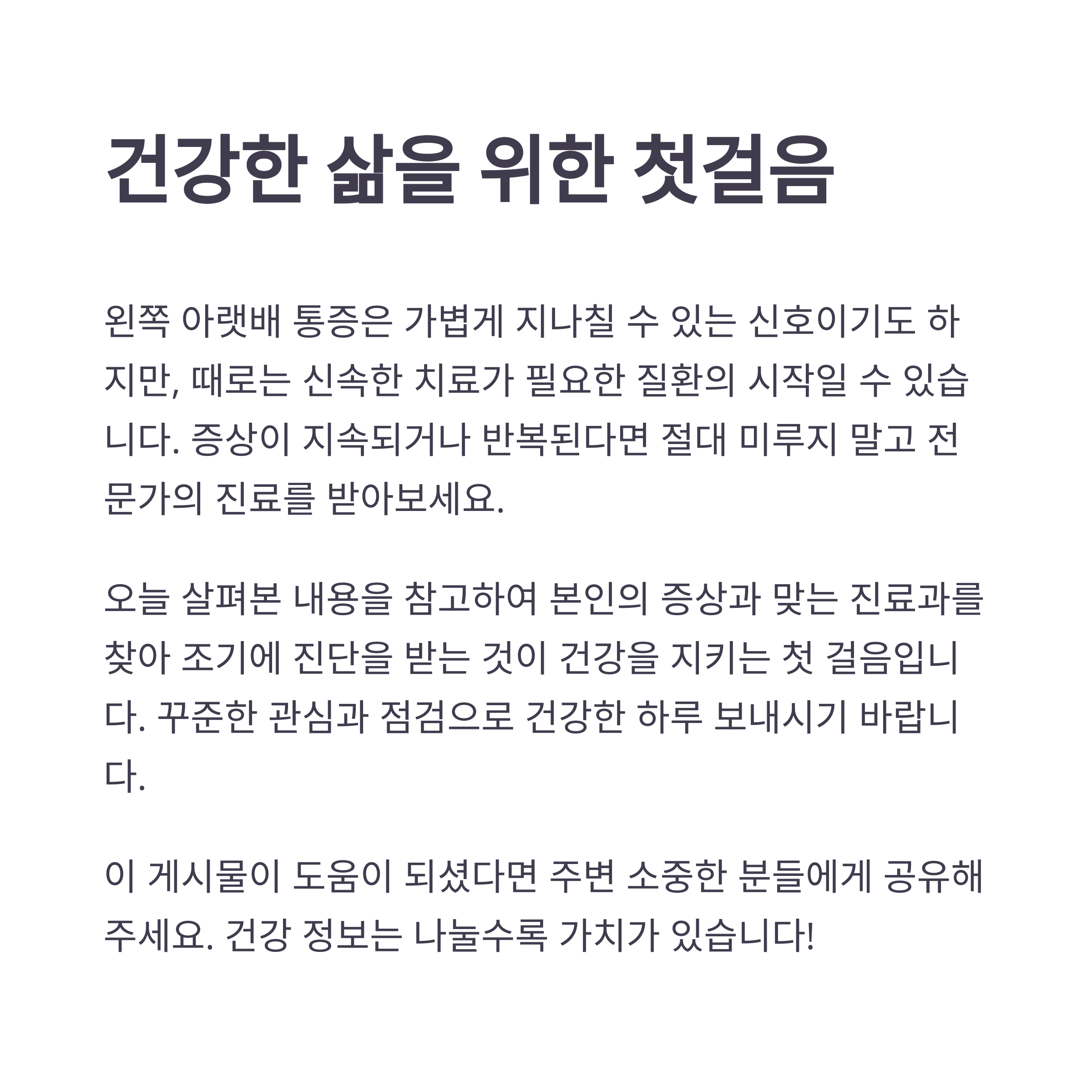 오늘은 왼쪽 아랫배 통증의 다양한 원인과 증상별 의심 질환,