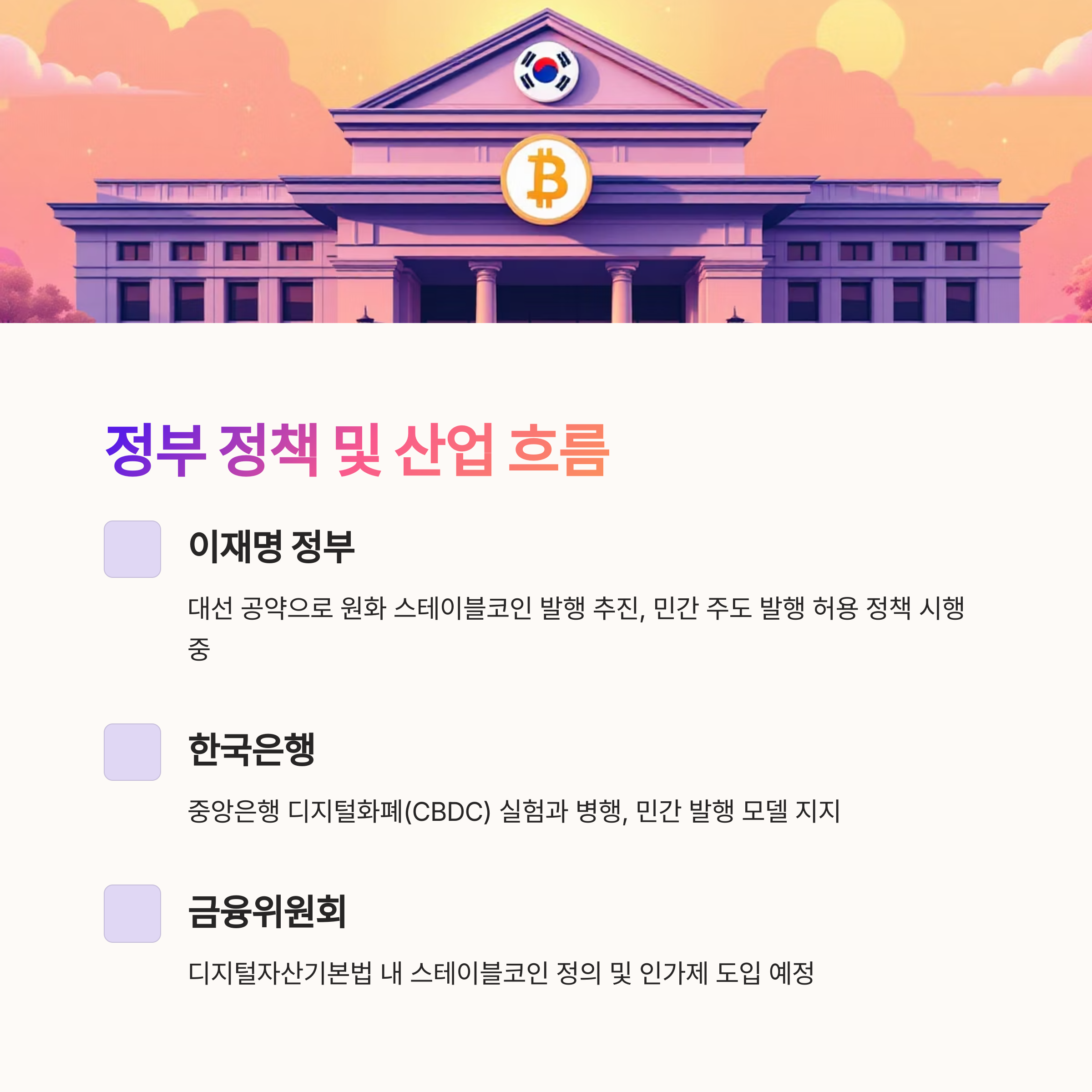 • 2025년 하반기: 스테이블코인 민간 시범 사업 본격화