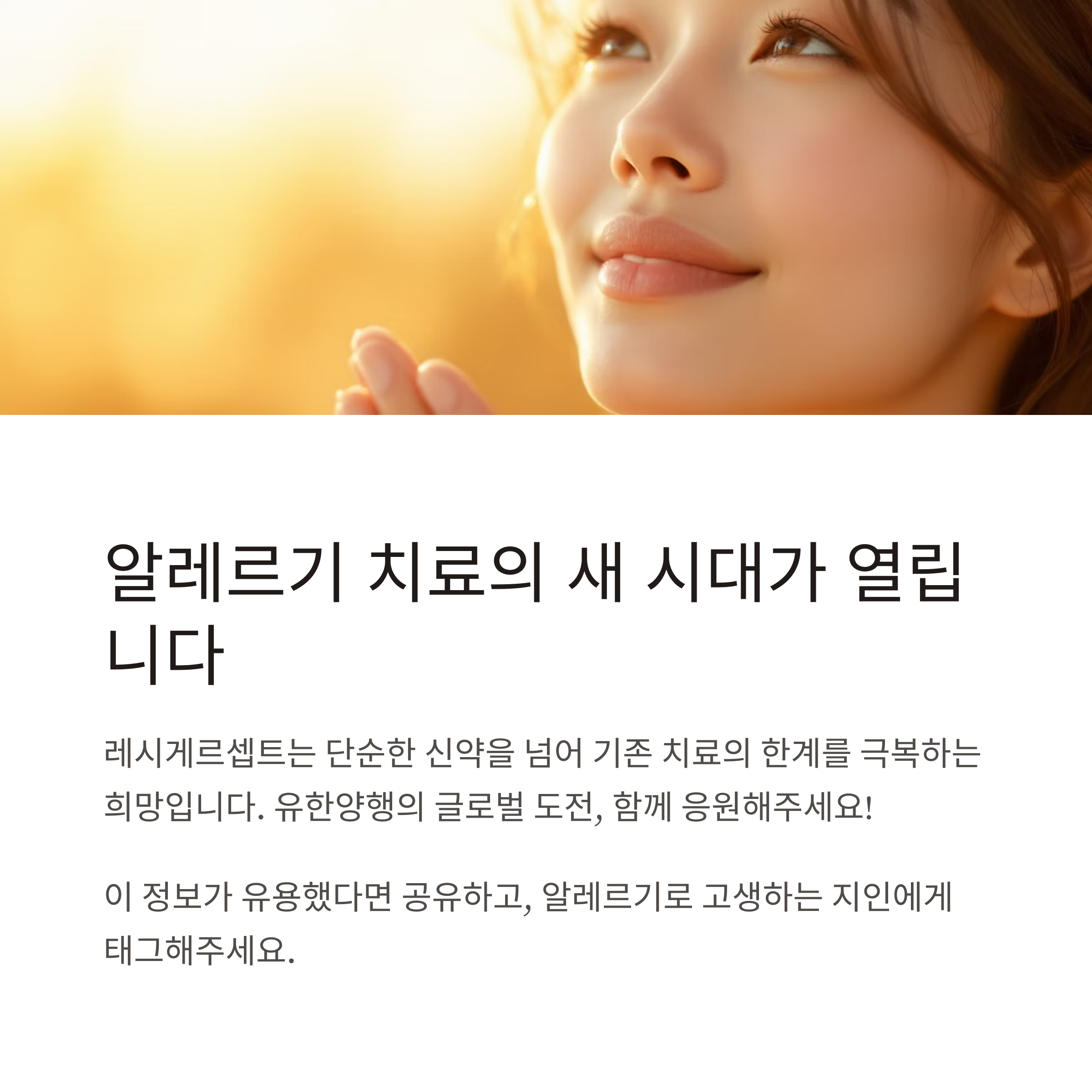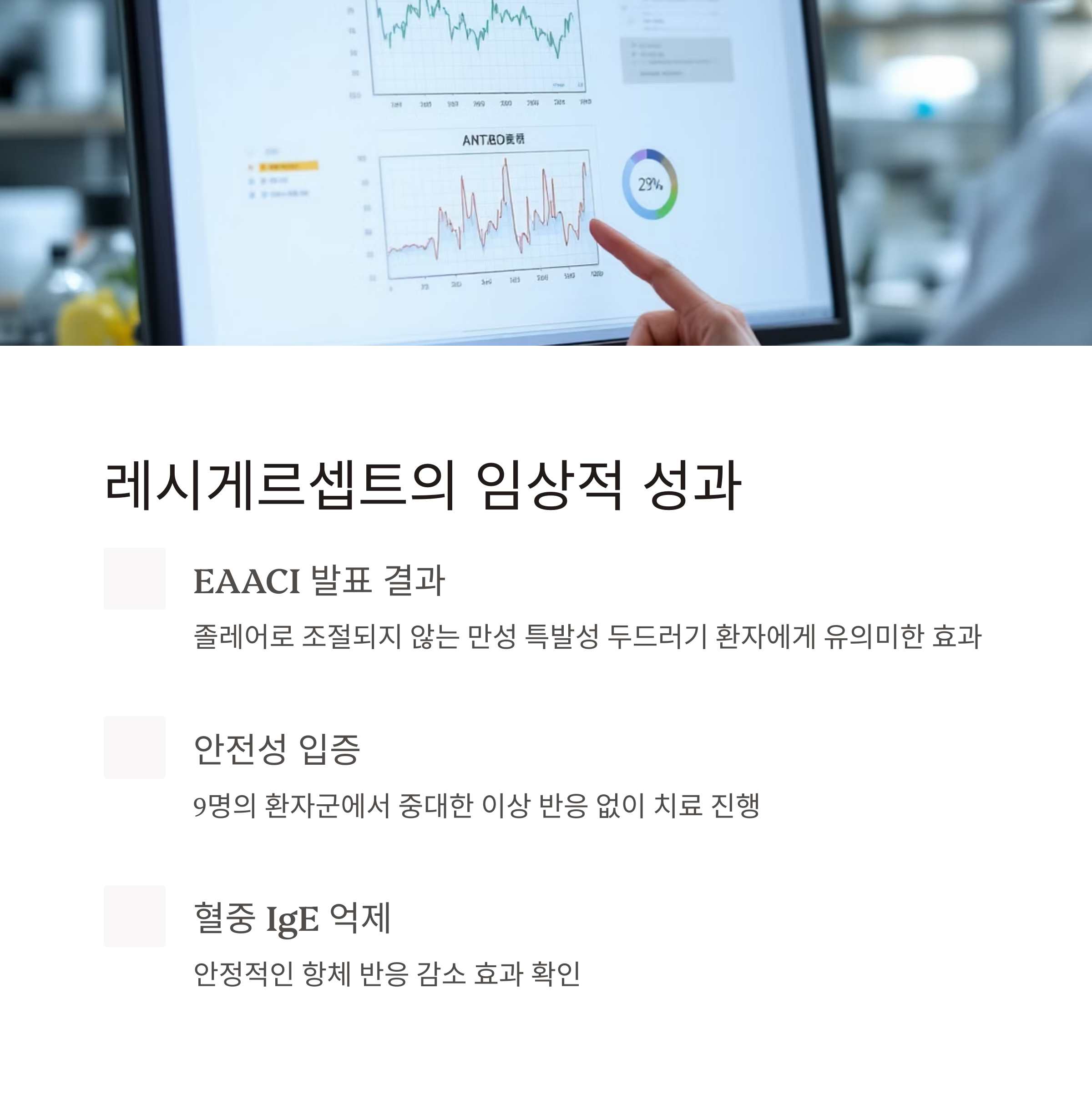 레시게르셉트는 단순히 새로운 알레르기 치료제를 넘어, 기존 치료 한계를 넘어서고 있는 희귀하고 중요한 사례입니다.