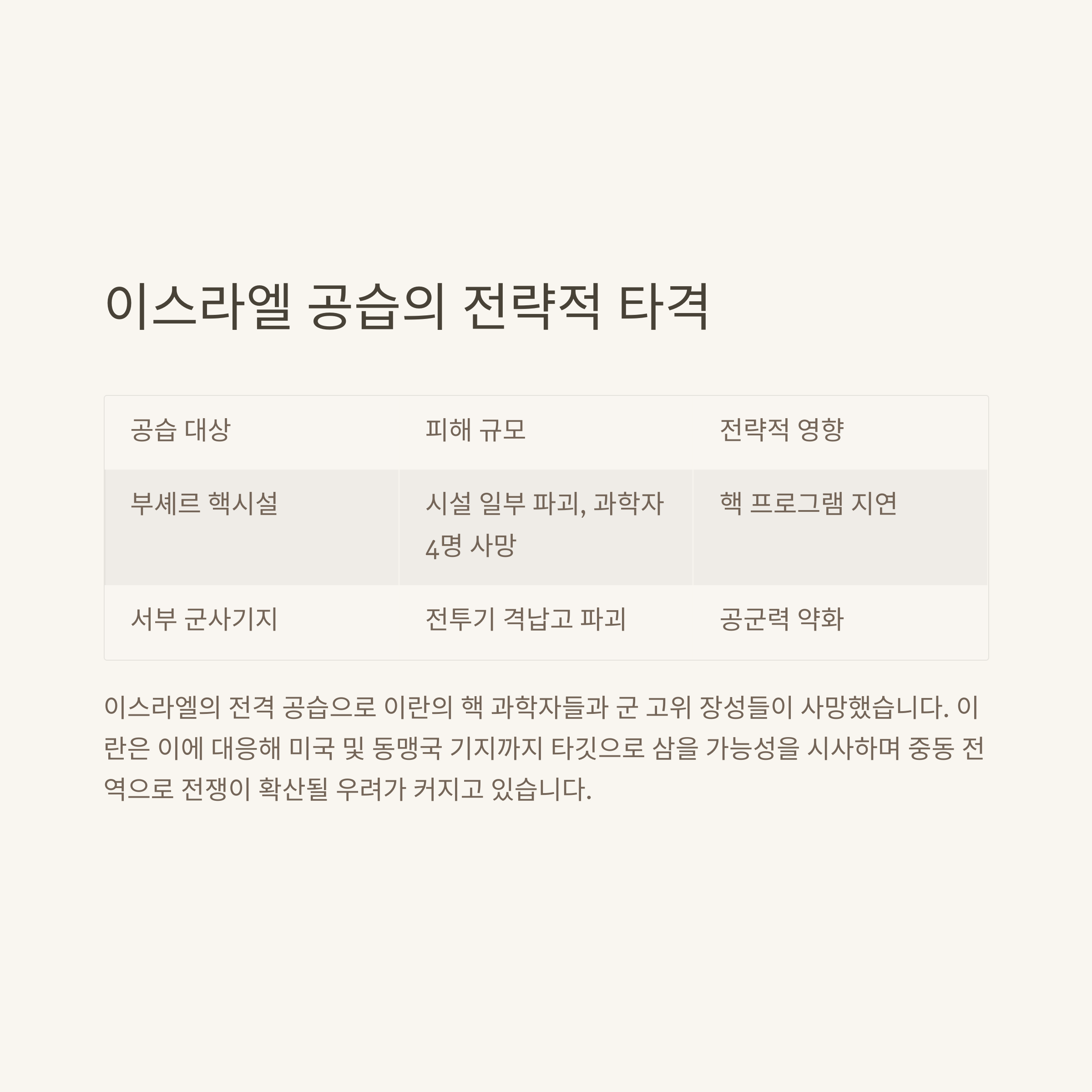 2025년 6월 13일, 이스라엘이 이란의 핵시설과 군사기지를 공습하면서 긴장은 최고조에 달했고,