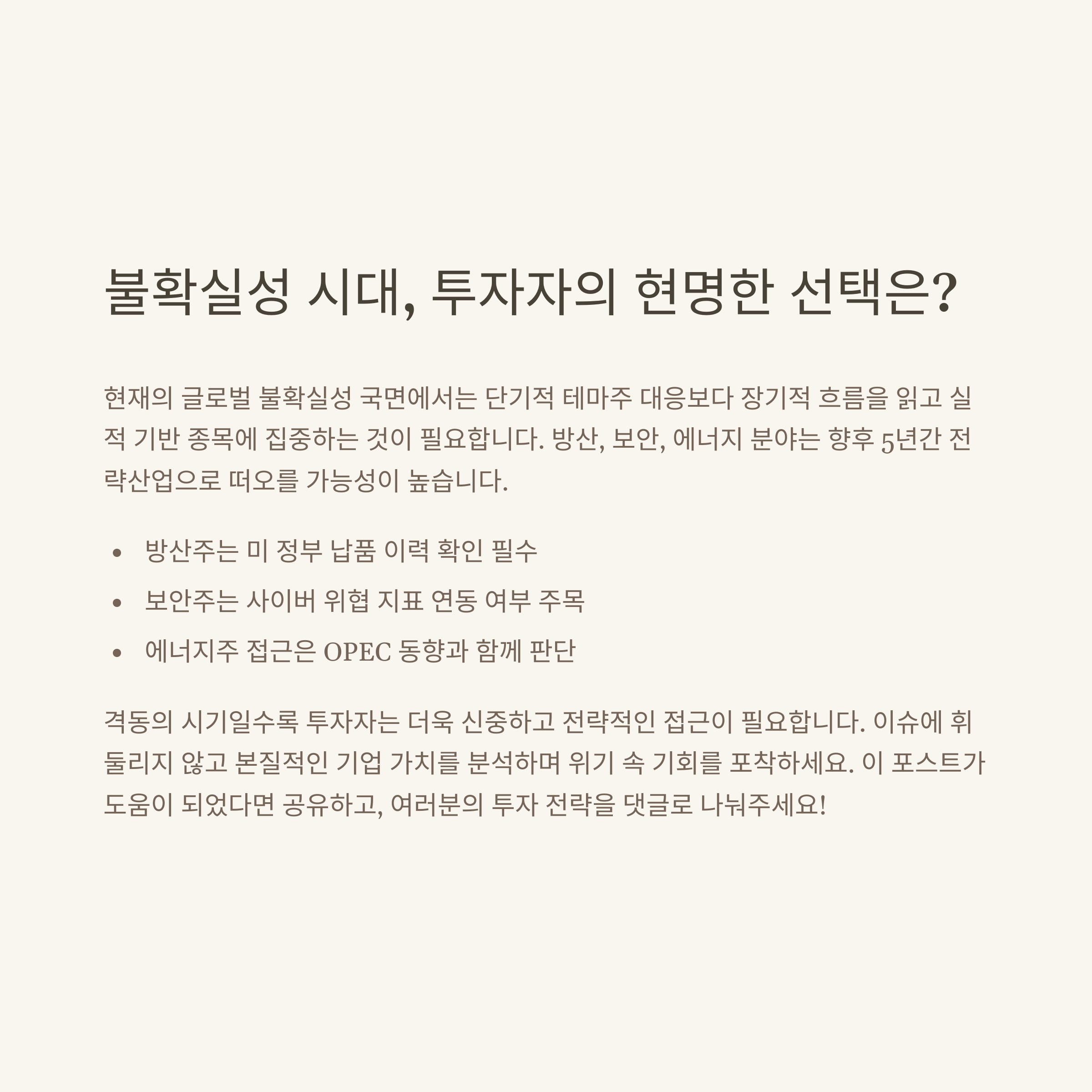 방산·보안 관련주의 반응, 그리고 향후 투자 전략에 대해 살펴보겠습니다.