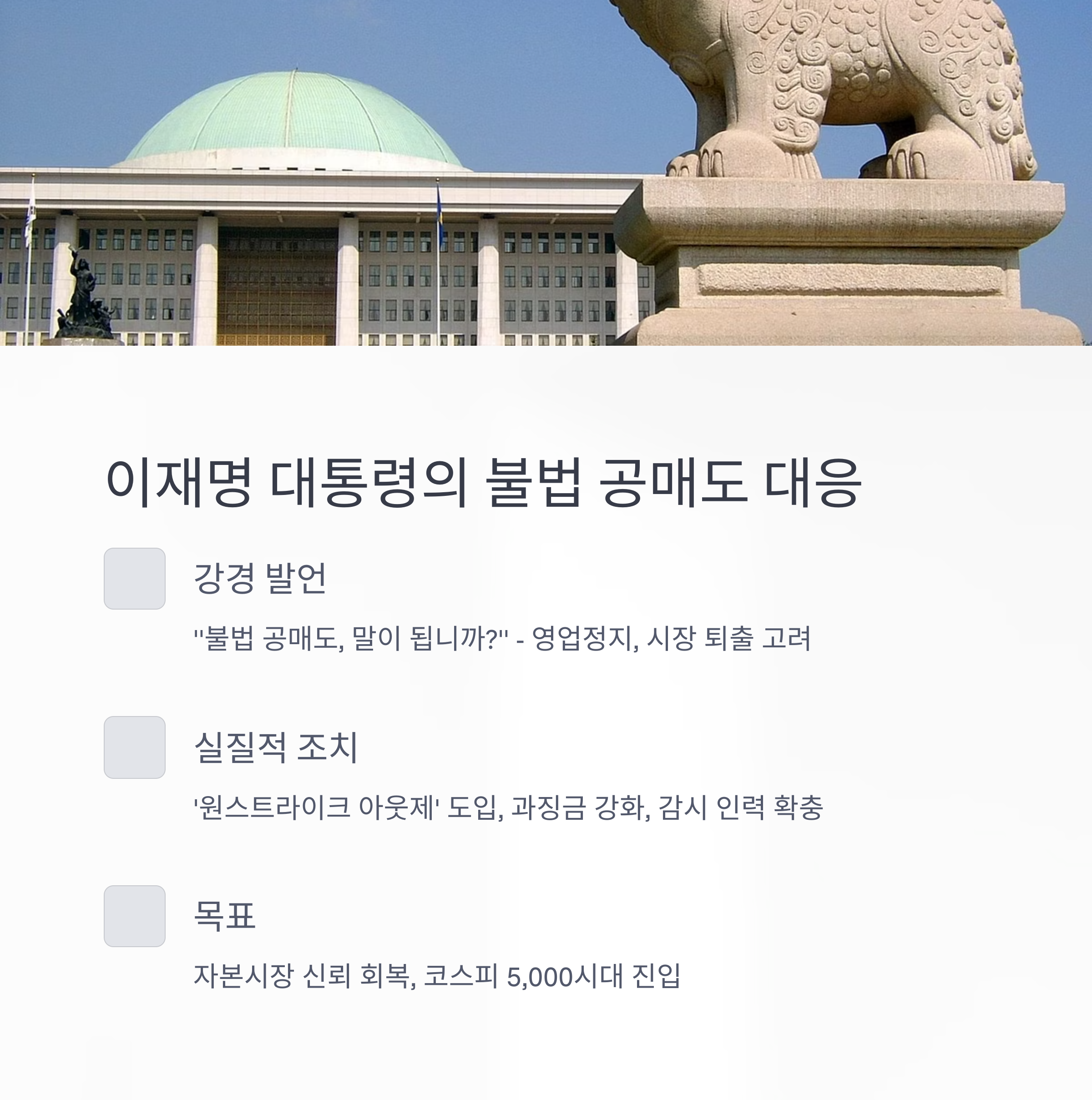 이재명 대통령의 공매도 근절 의지와 증시 활성화 전략이 투자자들의 관심을 집중시키고 있습니다.
