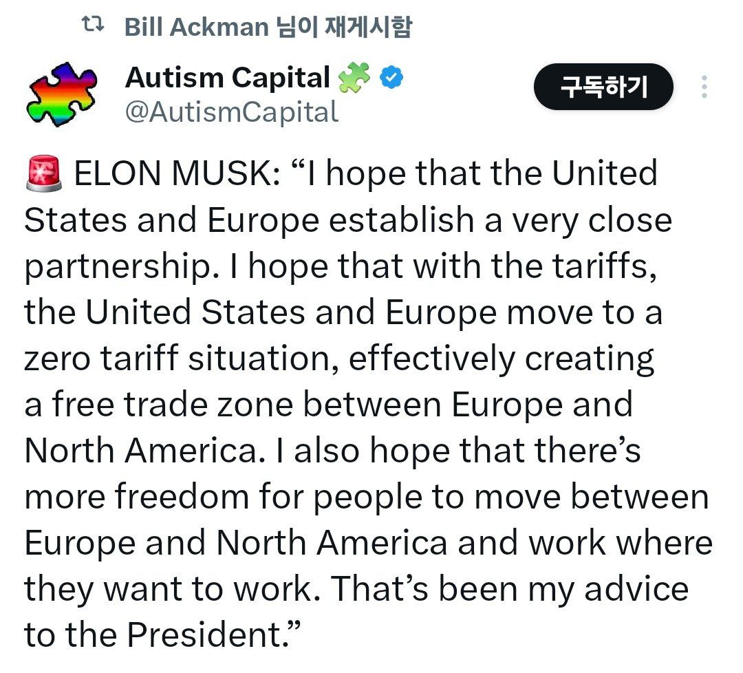 세계적인 혁신가이자 기업가인 일론 머스크가 최근 제안한 미국-유럽 자유무역지대 구상은 단순한 아이디어를 넘어 글로벌 경제 흐름과 무역, 그리고 인력 이동의 패러다임을 바꾸는 신호탄이 될 수 있습니다. 그는 트위터를 통해 양 지역 간의 무관세 상태로의 전환과 함께 사람들의 자유로운 이동을 대통령에게 직접 조언했다고 밝혔습니다.
