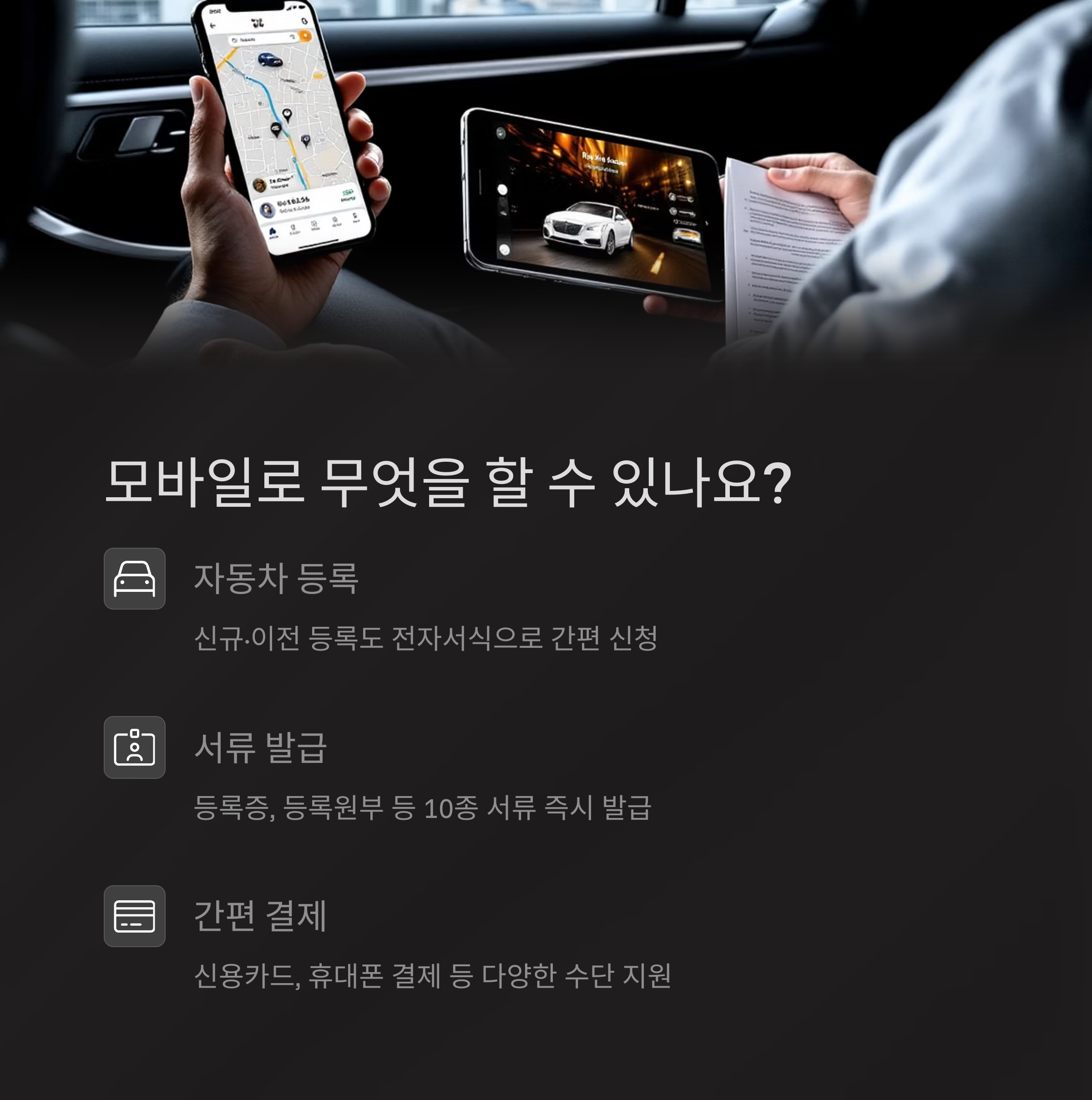 이제 자동차 민원도 손바닥 안에서 간편하게 처리하는 시대가 열렸습니다.