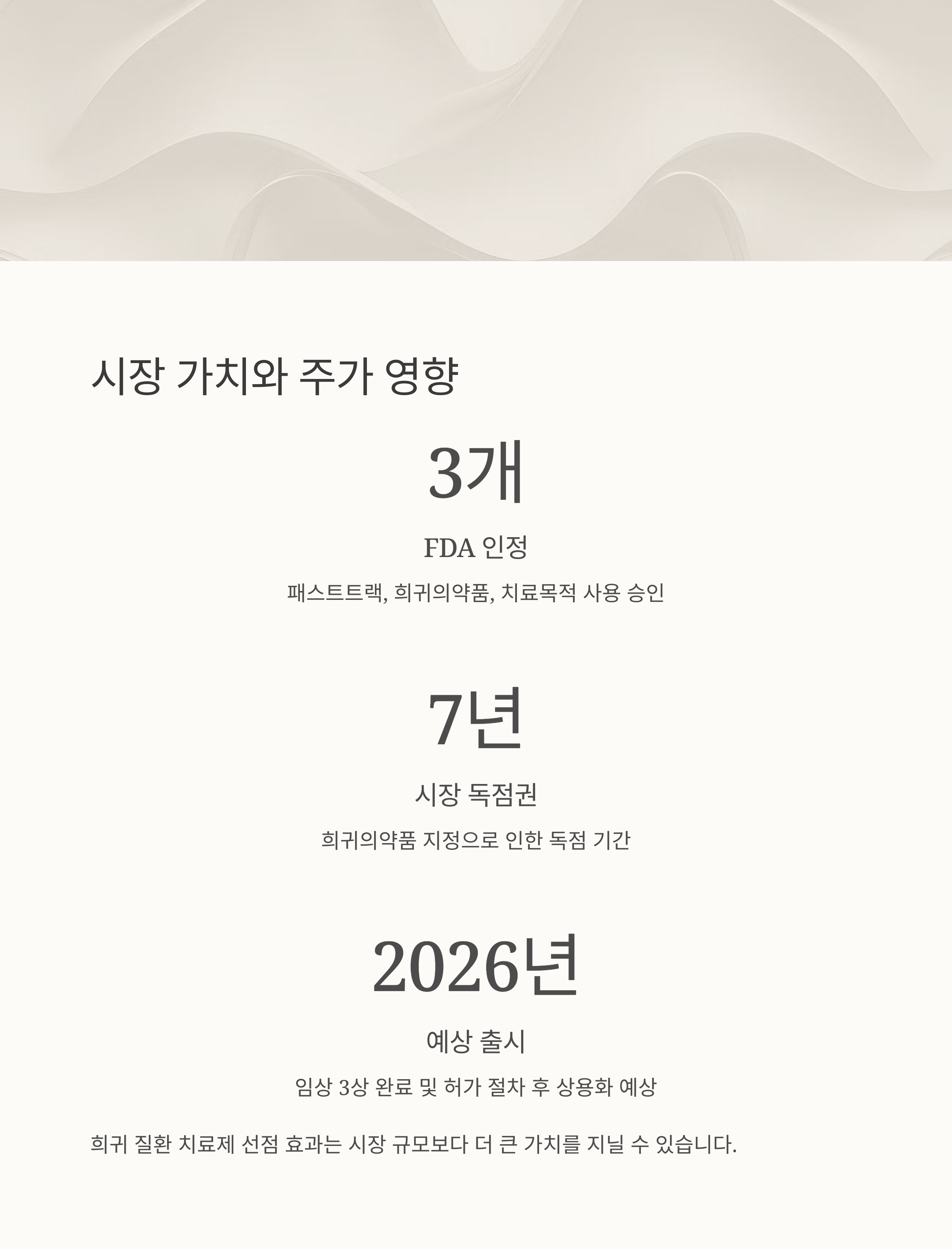 | 치료목적 사용 승인 | 임상 전 수익화 가능 → 조기 시장 반응 확인 |