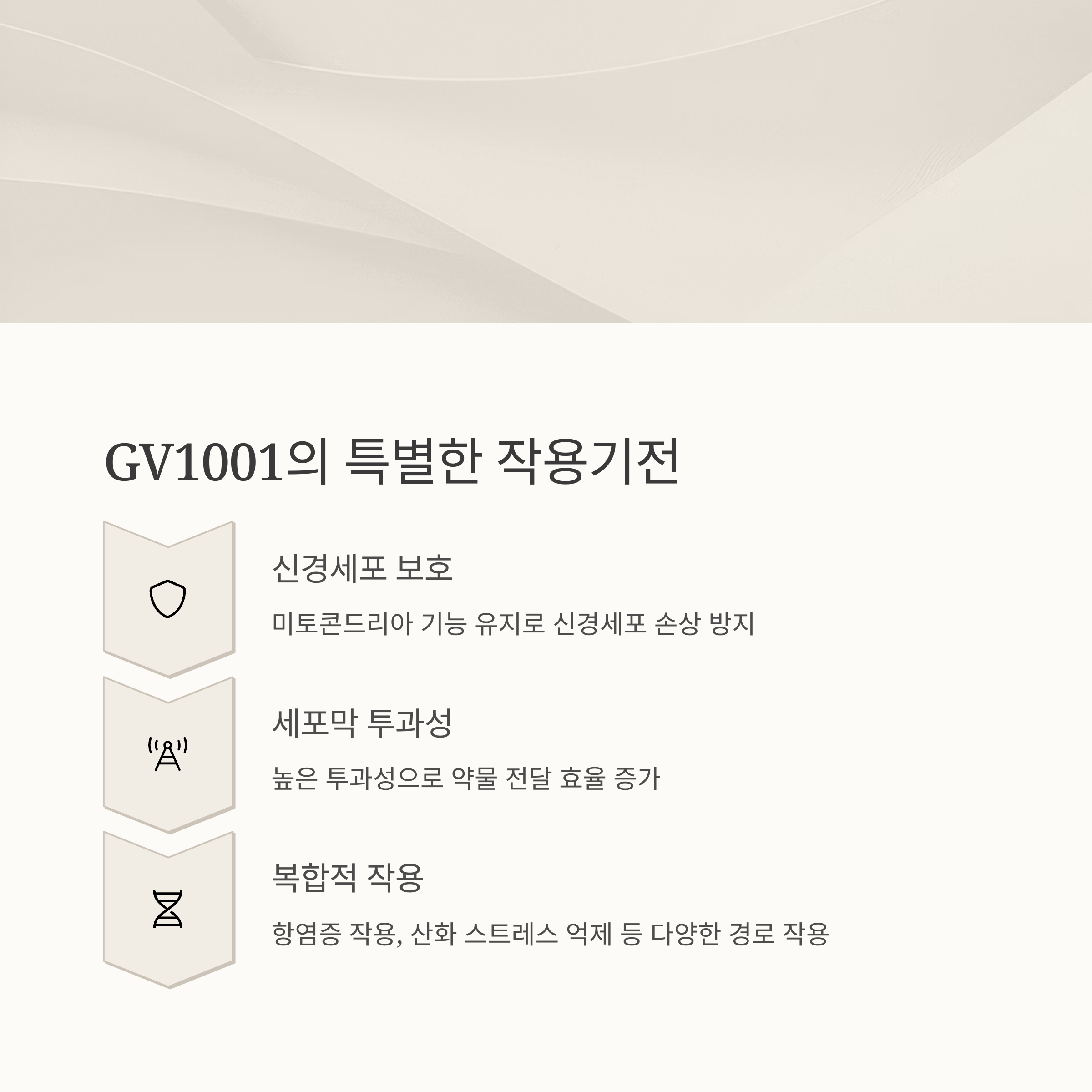 이 물질은 세포 내 미토콘드리아 기능 유지, 항염증 작용, 산화 스트레스 억제 등 다양한 경로를 통해 신경세포 손상을 방지하는 것으로 알려져 있습니다.