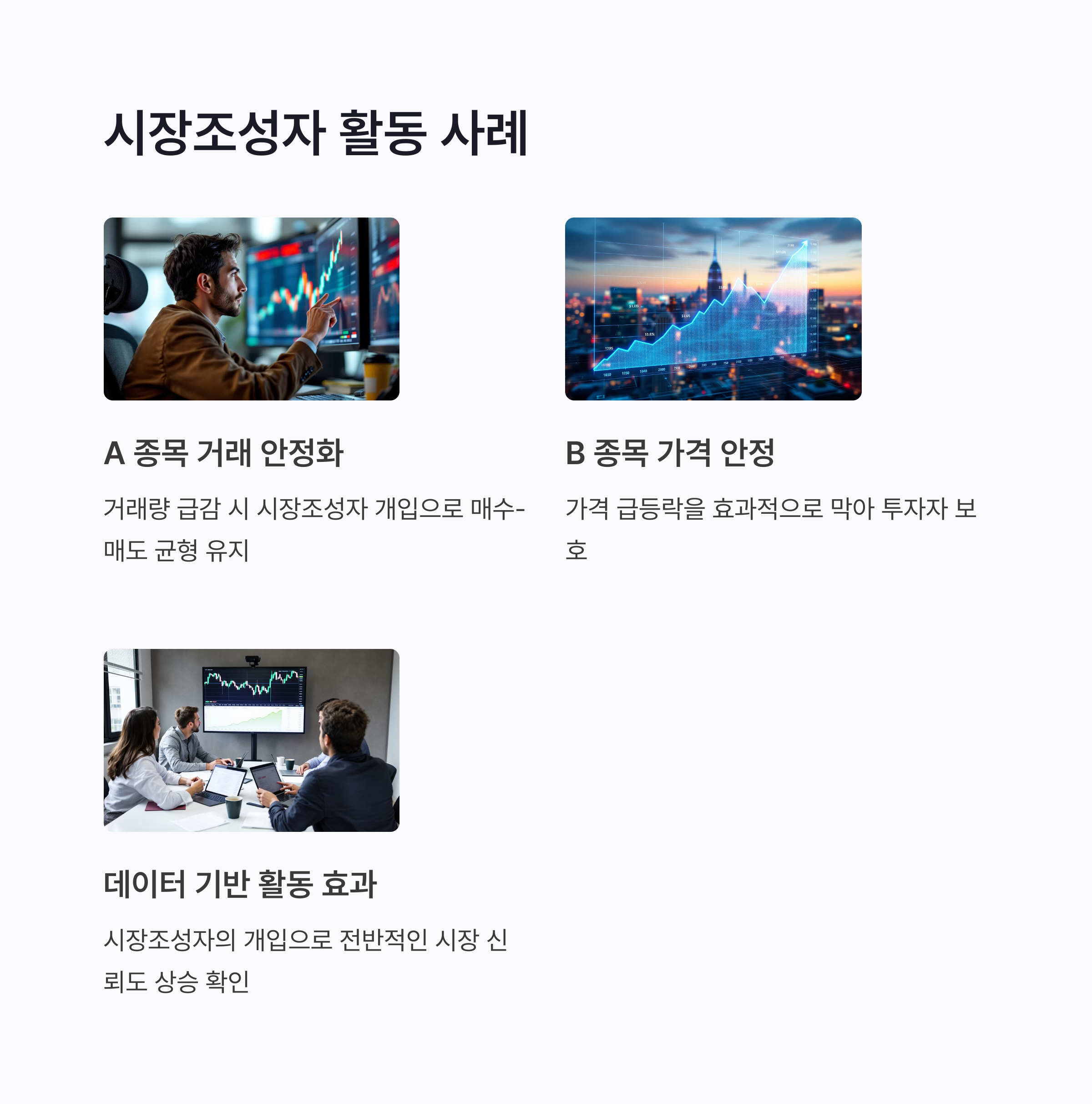 | 매수/매도 호가 제시, 거래 활발하게 유도 | 거래 불균형 해결, 투자자 편의성 증대 | 급격한 가격 변동 방지, 시장 신뢰 제고 |