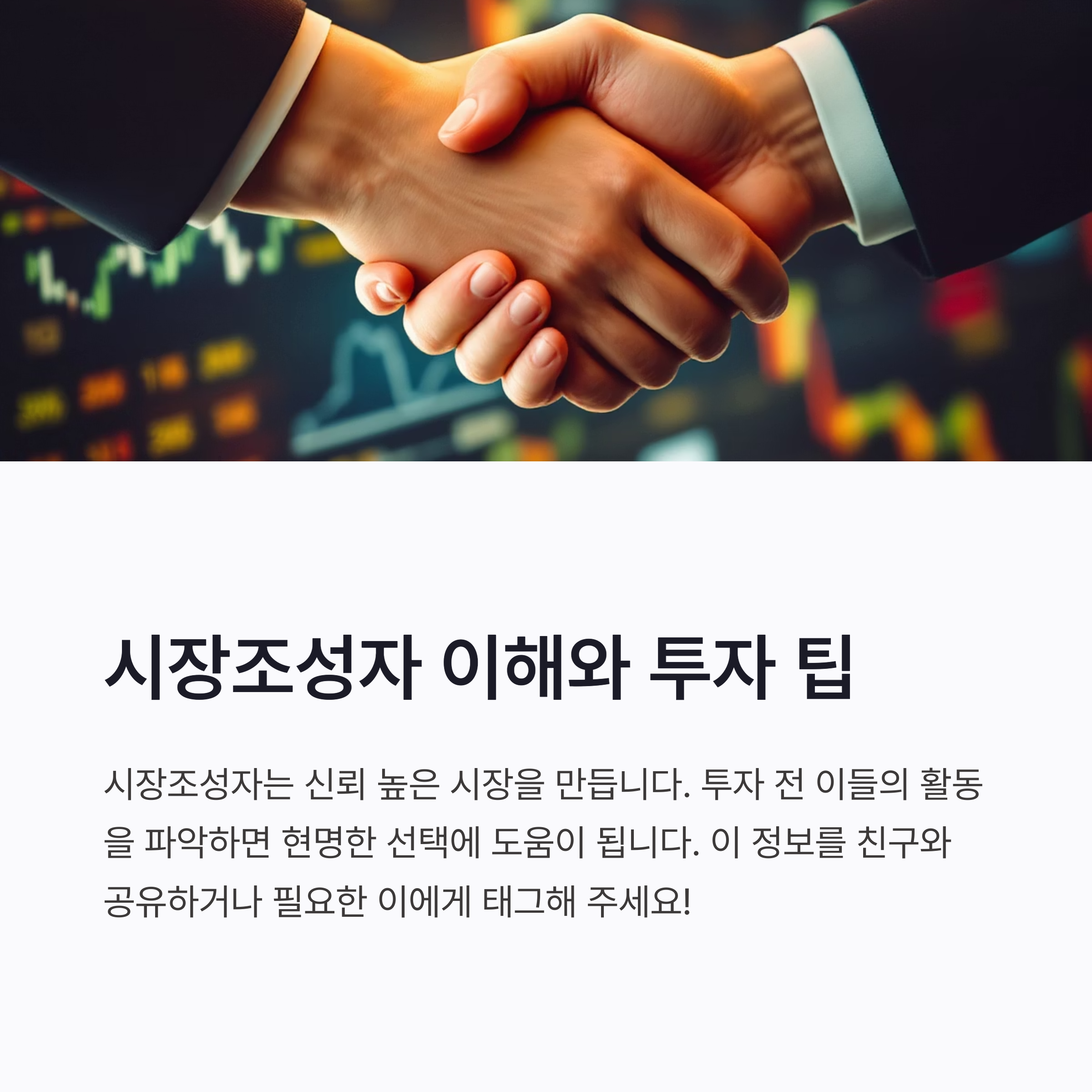 시장조성자는 이런 거래 공백을 메워주며, 매도와 매수 사이의 균형을 조율합니다. 많은 분들이 이 개념을 어렵게 느끼지만, 실제로는 일상 속 도우미와도 같은 존재입니다. 오늘은 주식시장 내 시장조성자의 구체적인 역할과 그 효과에 대해 차근차근 설명드리겠습니다. 끝까지 읽으시면 이들이 왜 중요한지 분명히 이해하실 수 있을 것입니다. 그럼 본격적으로 시작해보겠습니다.