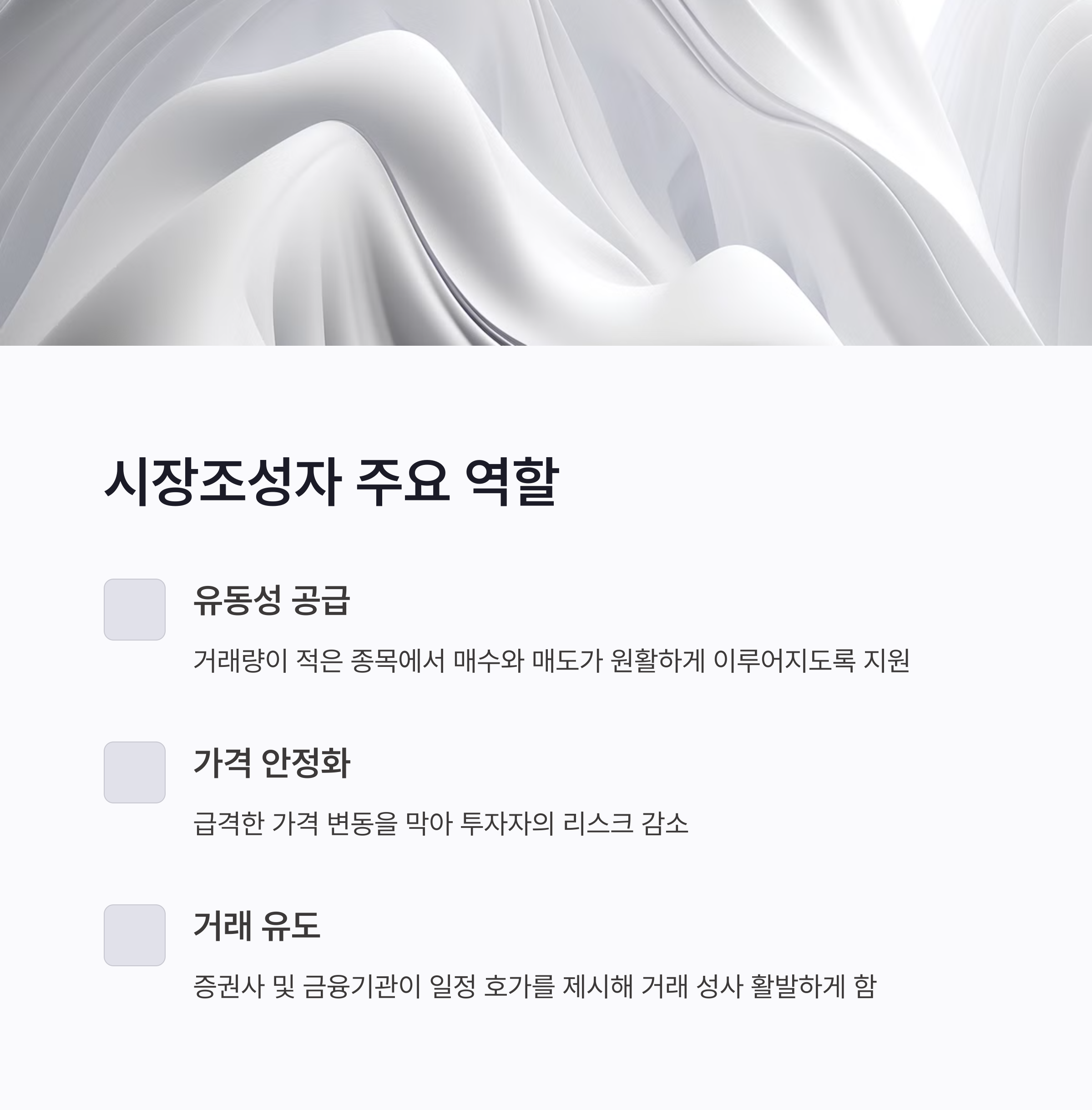 | 시장조성자 | 유동성 공급 | 가격 안정성 |