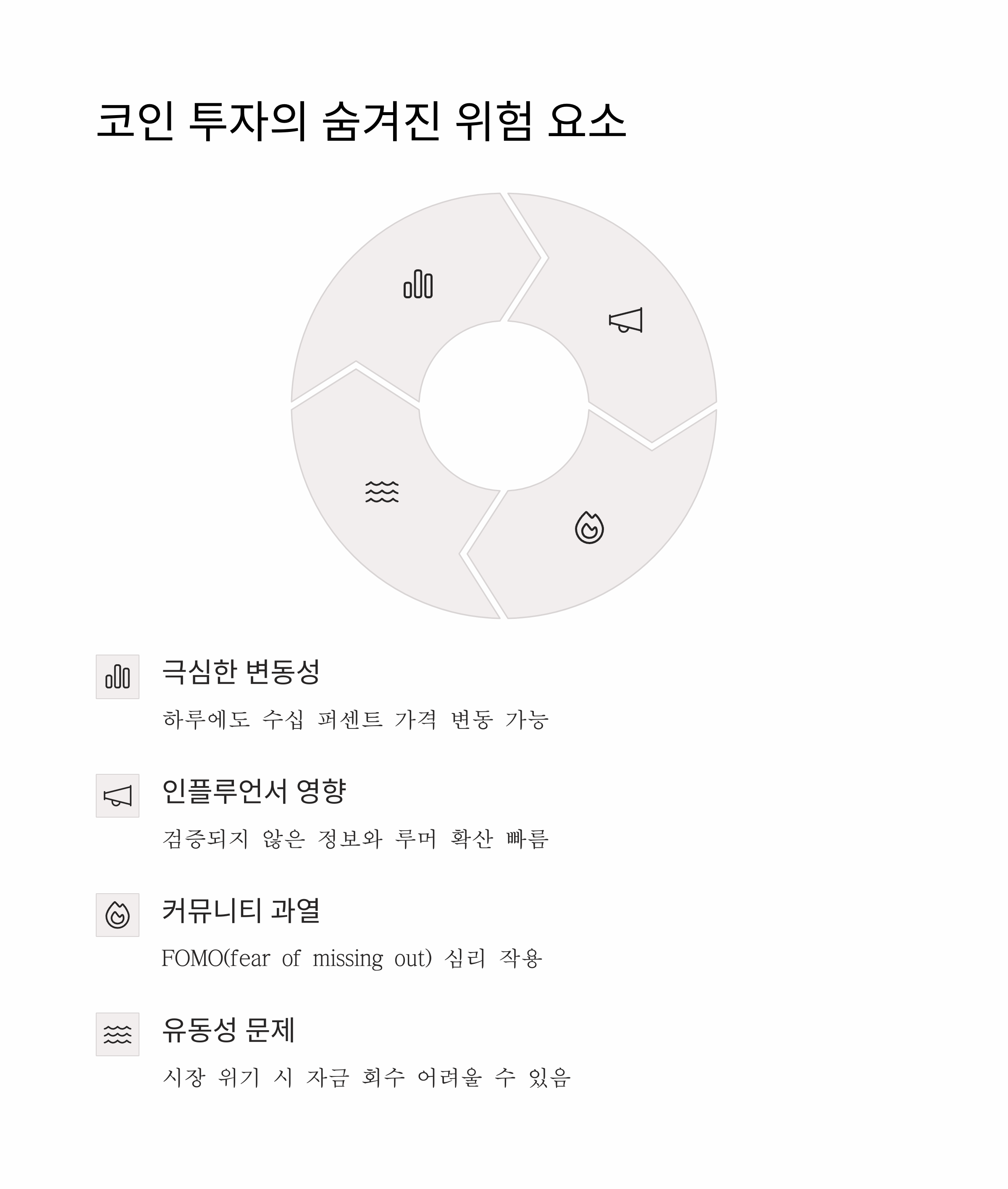 - 기본 개념, 기술 구조, 거버넌스 이해 없이 투자하면 손실 확률이 매우 높다.