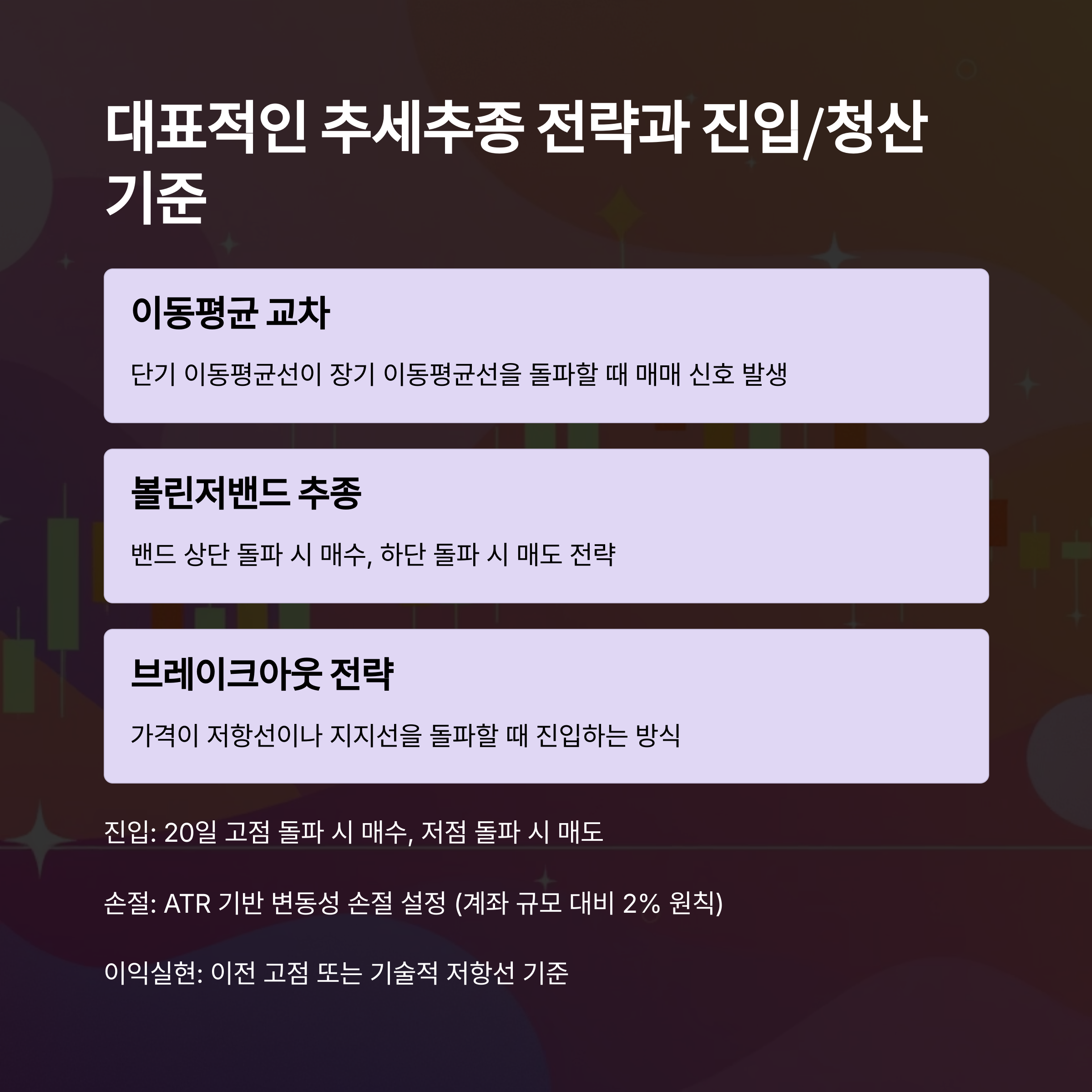 추세추종 전략은 수치 기반 규칙이 명확해 자동 매매 시스템으로 구현하기 용이하며, 실제로 많이 활용되고 있습니다.