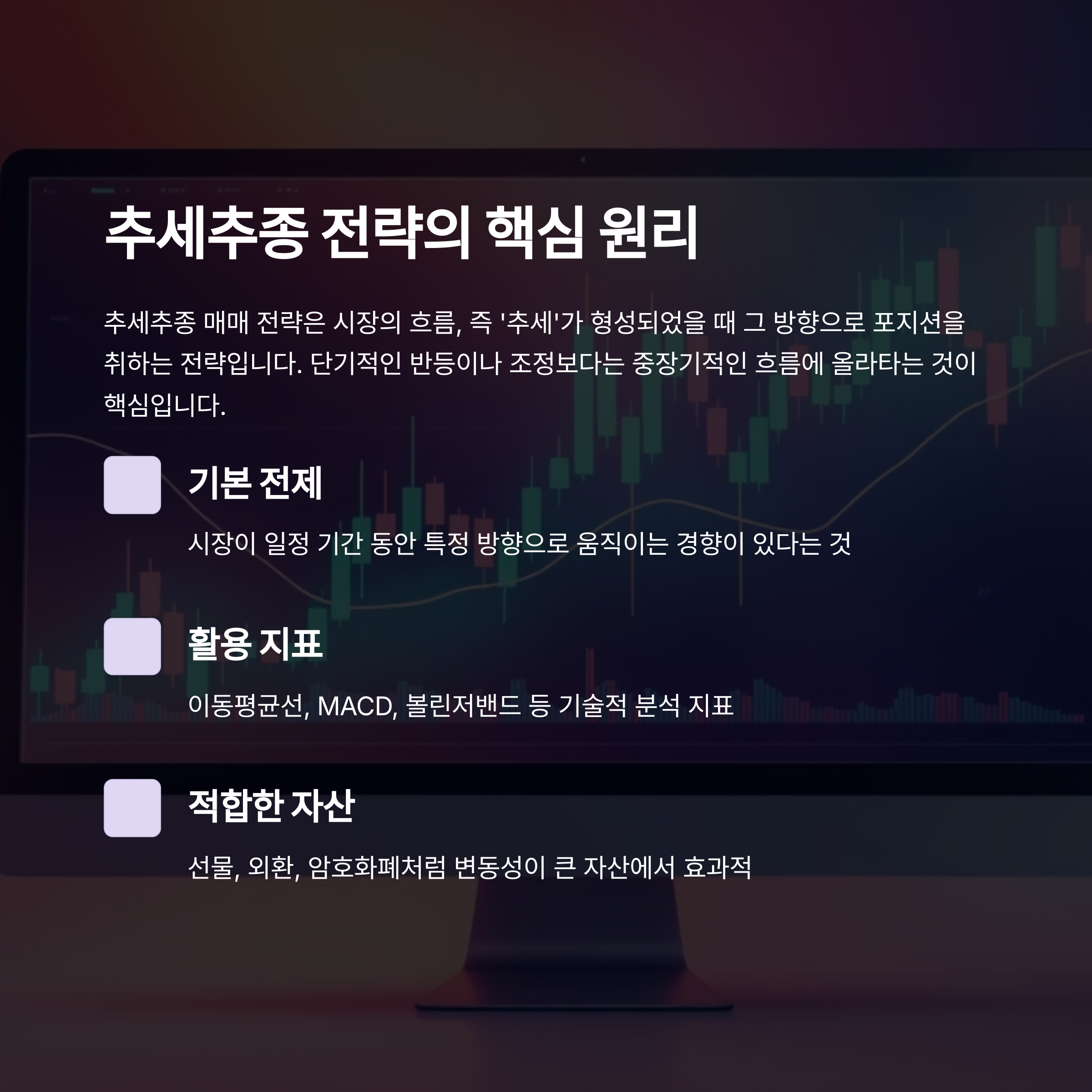 추세추종 매매 전략은 시장의 흐름, 즉 '추세'가 형성되었을 때 그 방향으로 매수 또는 매도 포지션을 취하는 전략입니다.