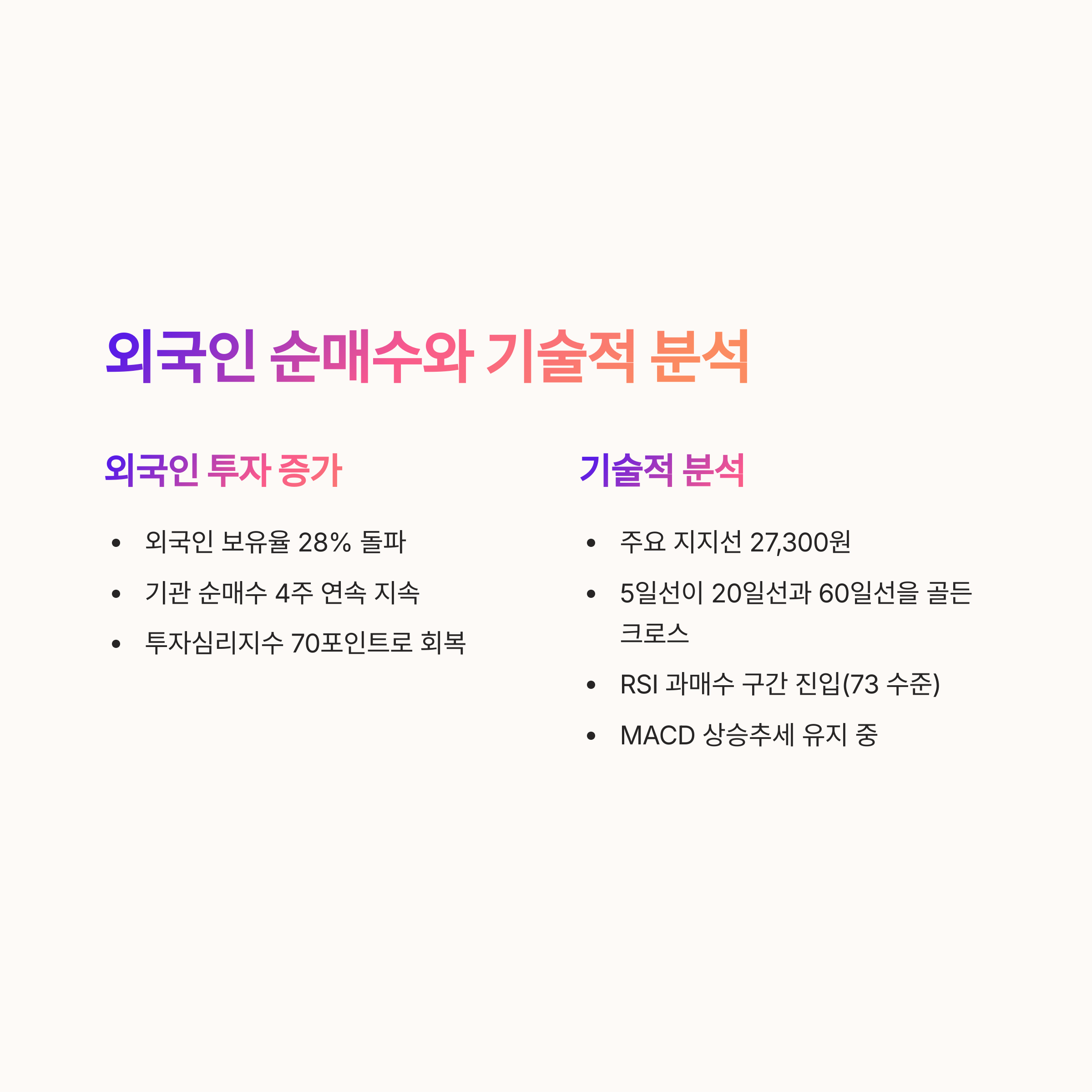 기관의 순매수도 함께 이어지며 투자심리 회복의 근거로 작용하고 있습니다.