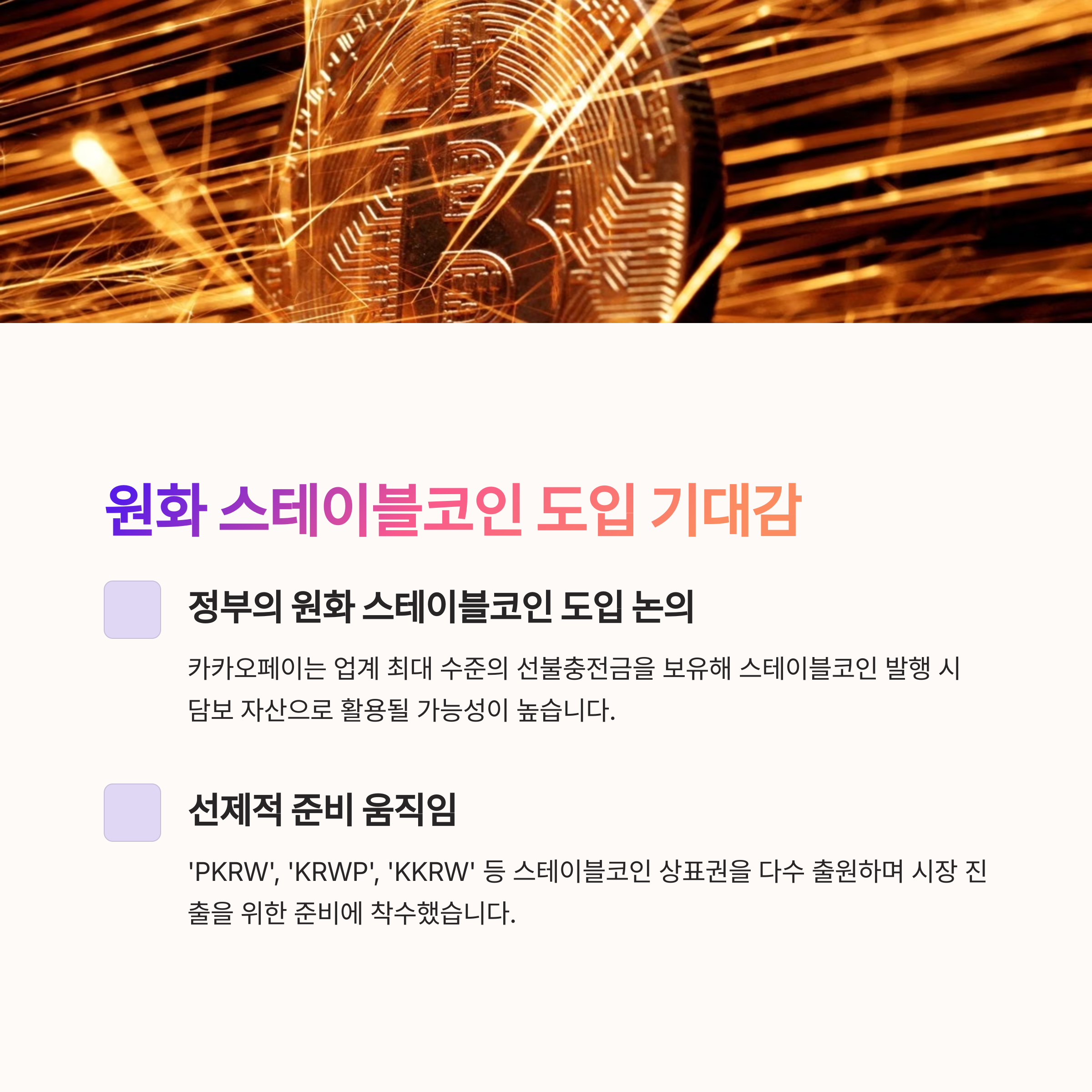 카카오페이 주가 급등의 핵심 동력 중 하나는 정부의 원화 스테이블코인 도입 논의입니다.