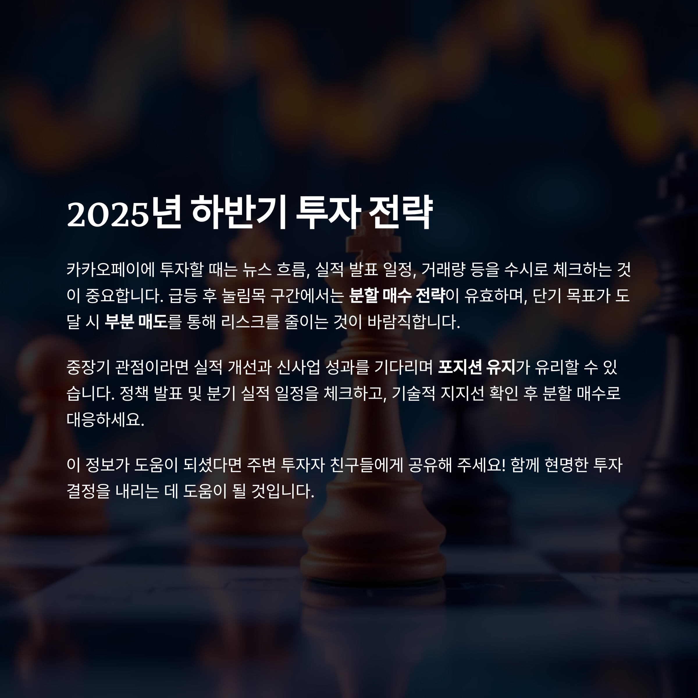 투자자라면 지금 시점에서 냉정하게 리스크를 판단하고, 분할 매수·매도 전략을 병행하면서 중장기적으로 꾸준한 관점 유지를 고려해 보시는 것이 바람직합니다.