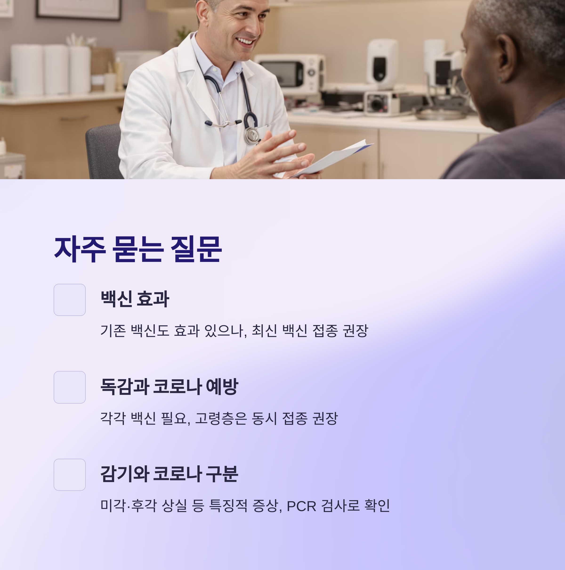 - 고령자 및 취약계층은 독감 백신과 코로나 백신 모두 접종 권장